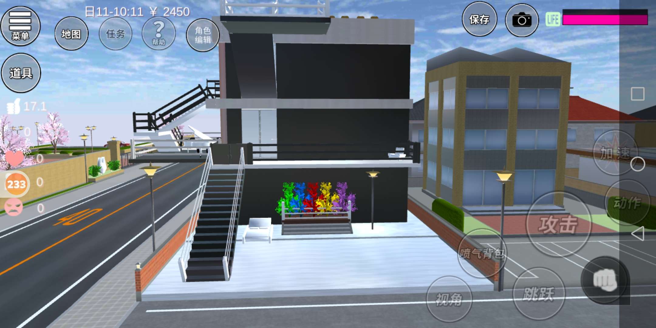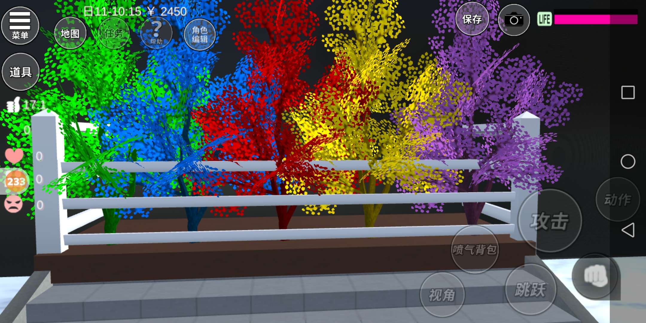 首先是院子部分,这里种了很多樱花树,好看吧?是彩虹色的