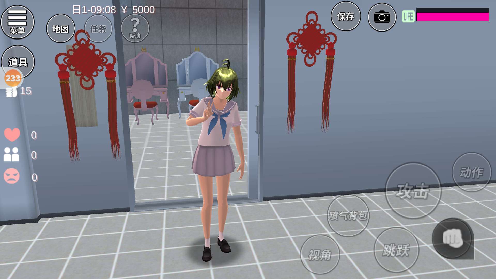 我做了一个水上乐园和女生宿舍。