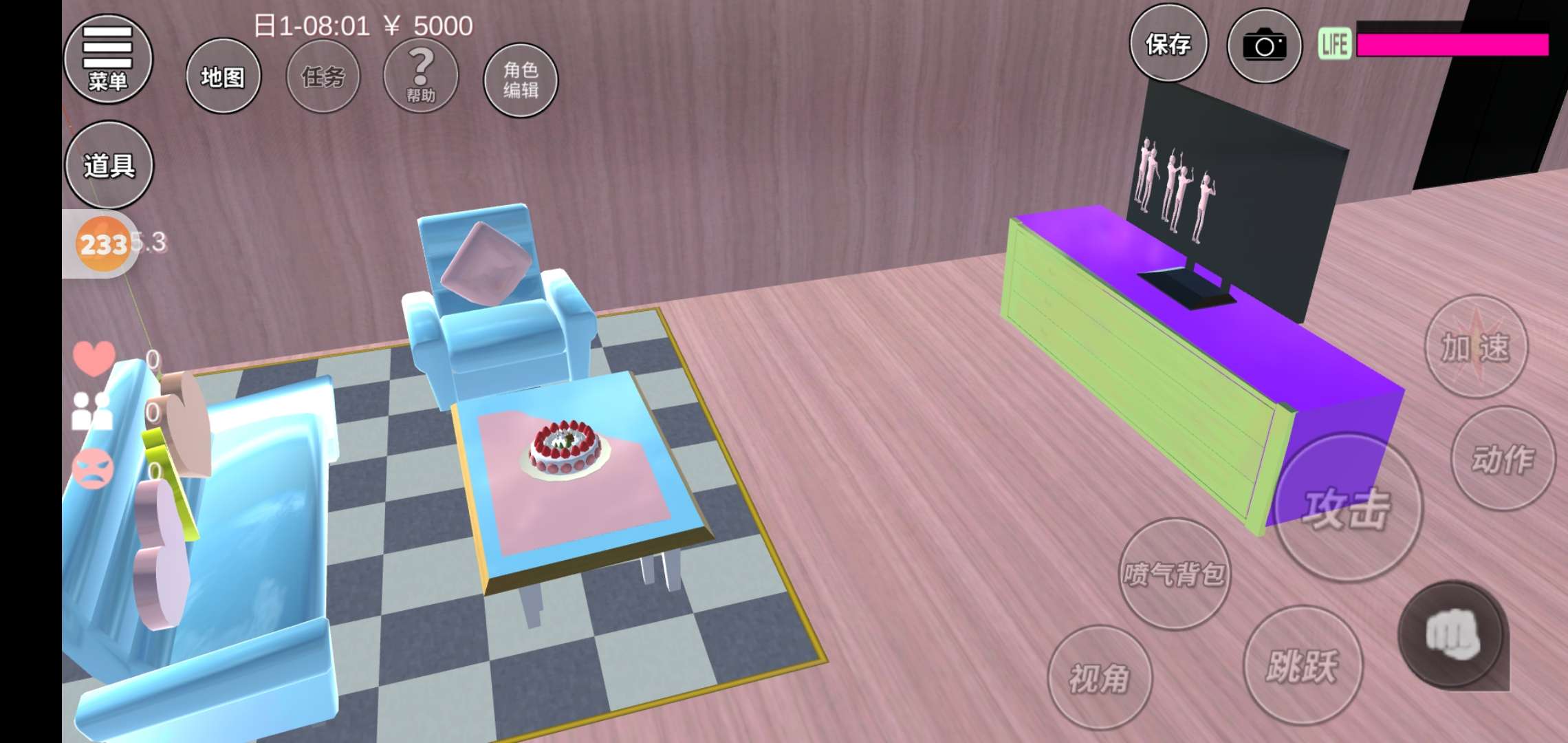 一个圆形的床