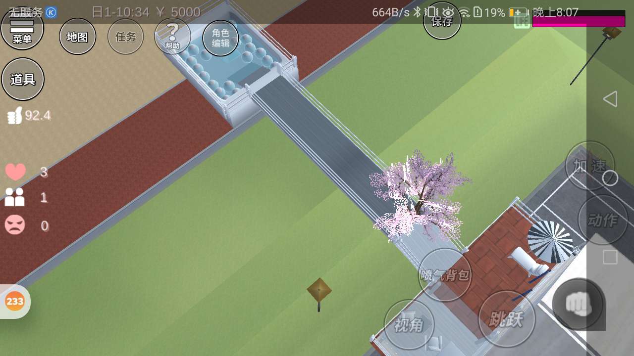 然后有一座桥,是去泳池的路。