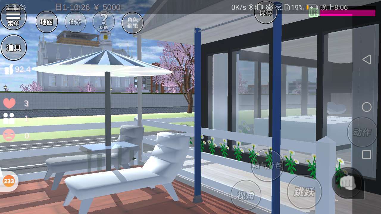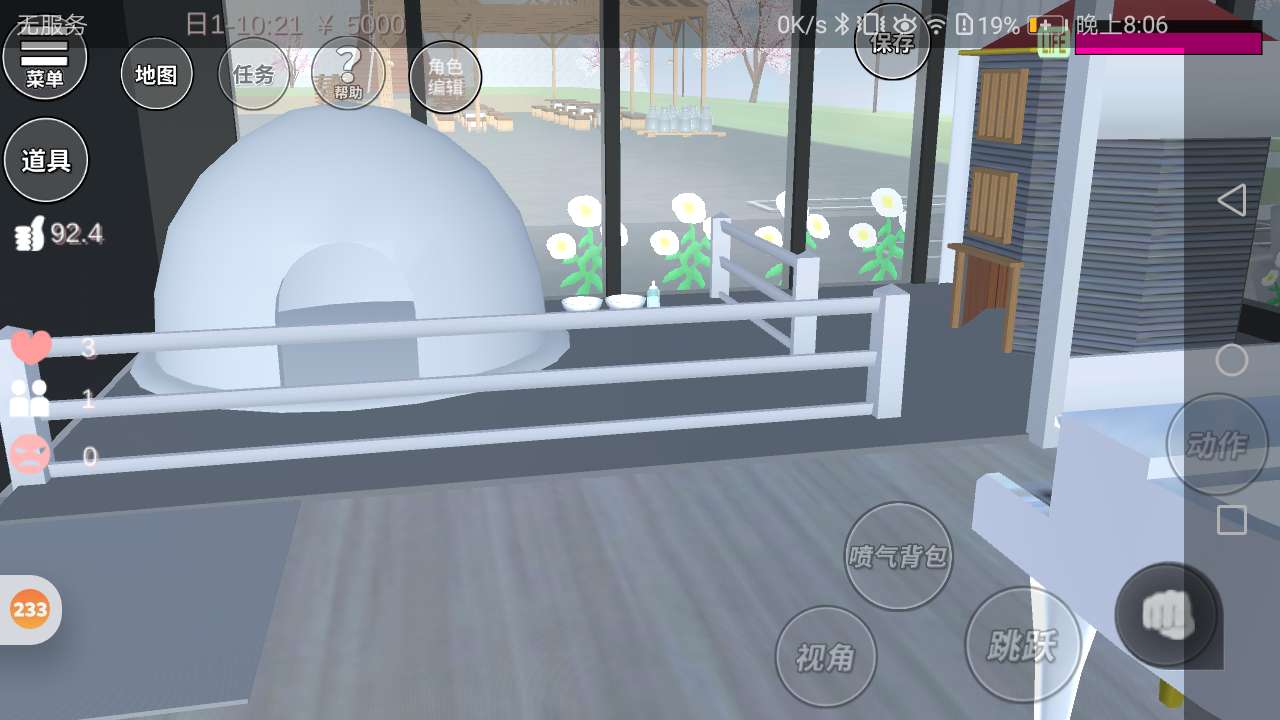 右边有晒太阳的地方和不知道是什么的东西。