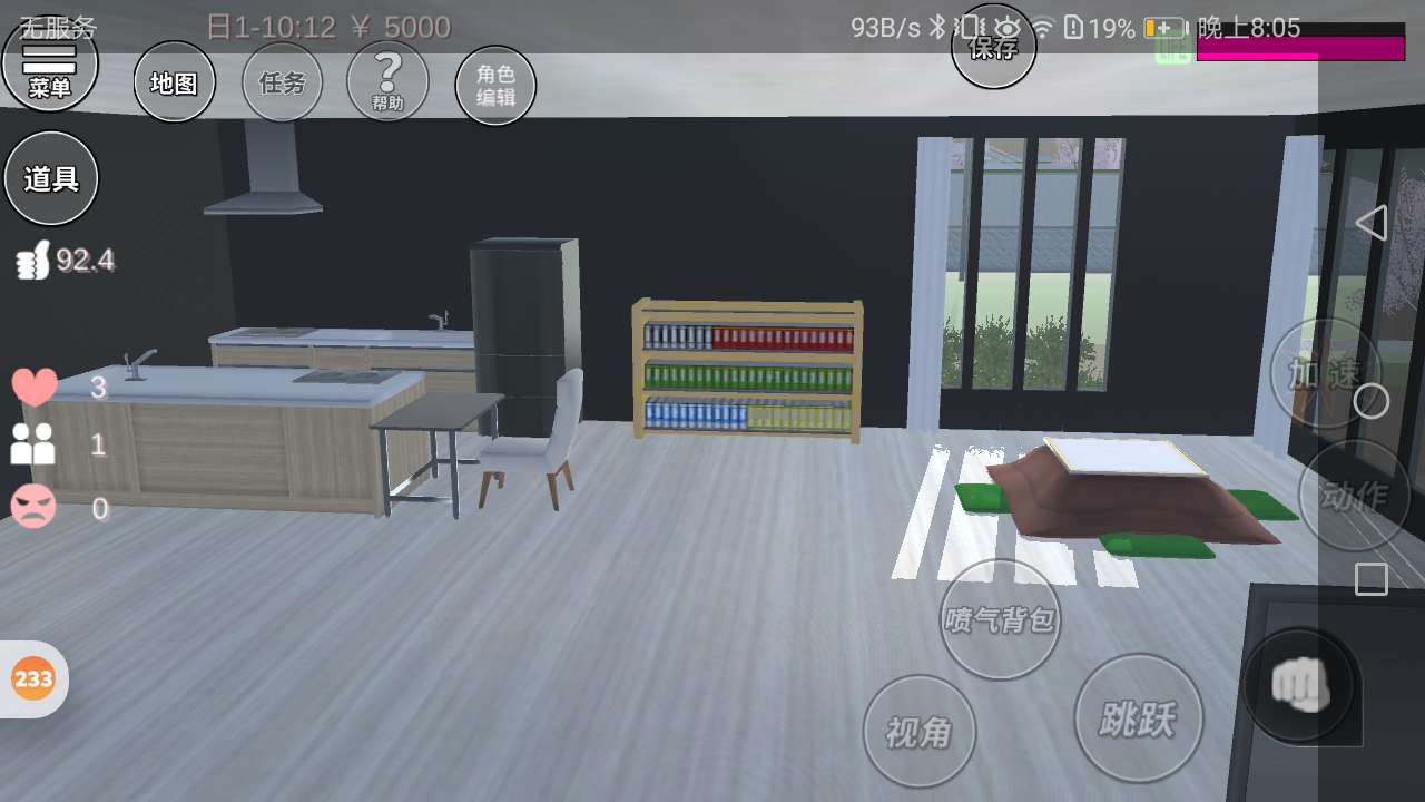 右边有一个开放试厨房,还有看书的被炉。