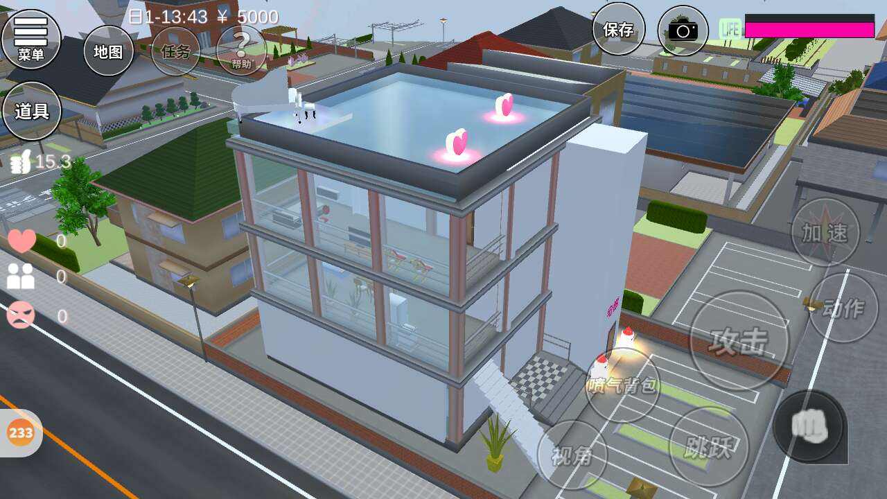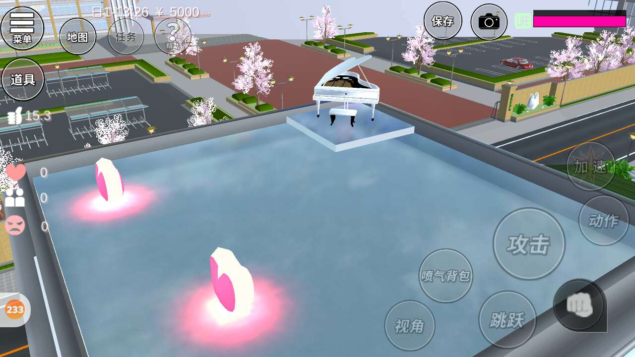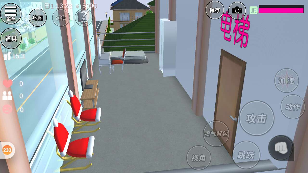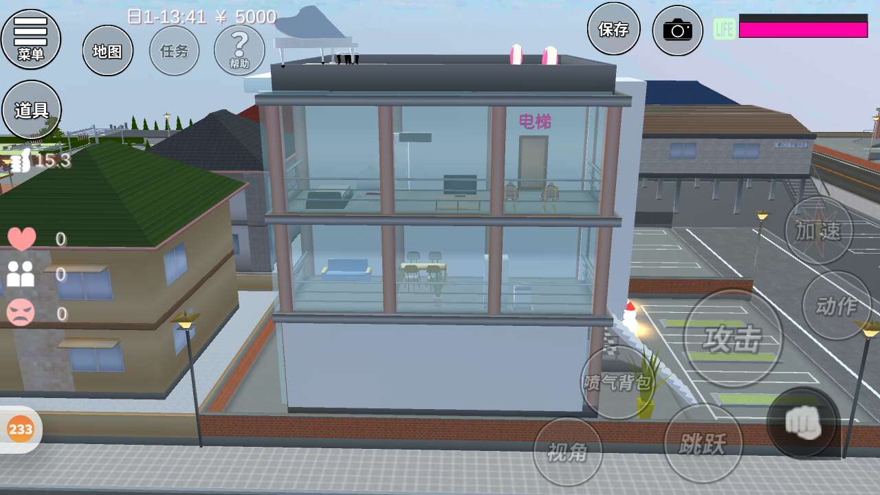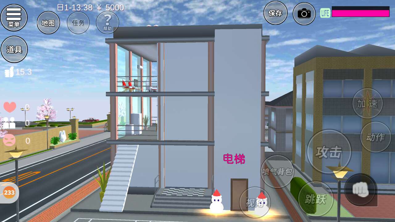 上面我做了一个游泳池,最有特色的是我做了电梯