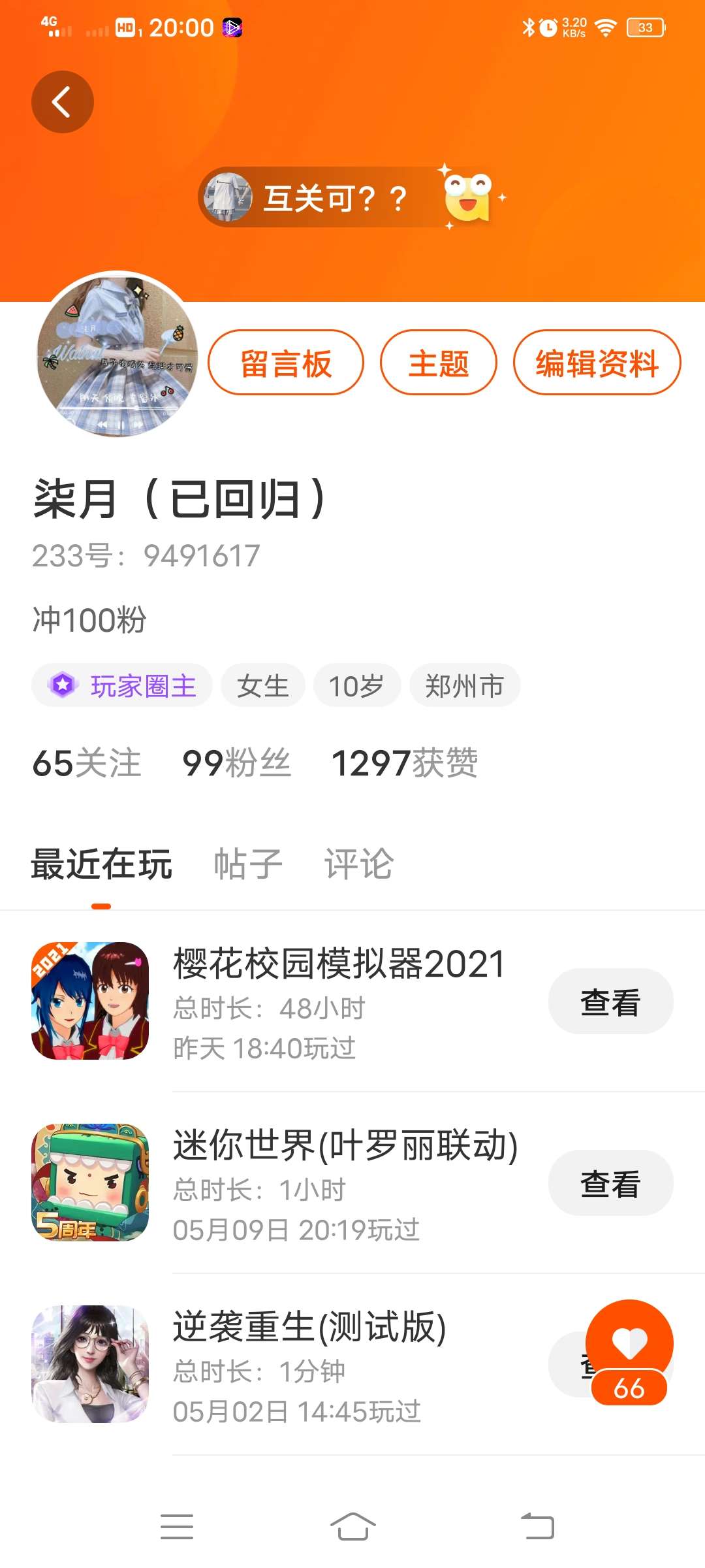 Hello!大家好!今天柒月看了一下自己的主页,发现还差一个粉,就100粉了!