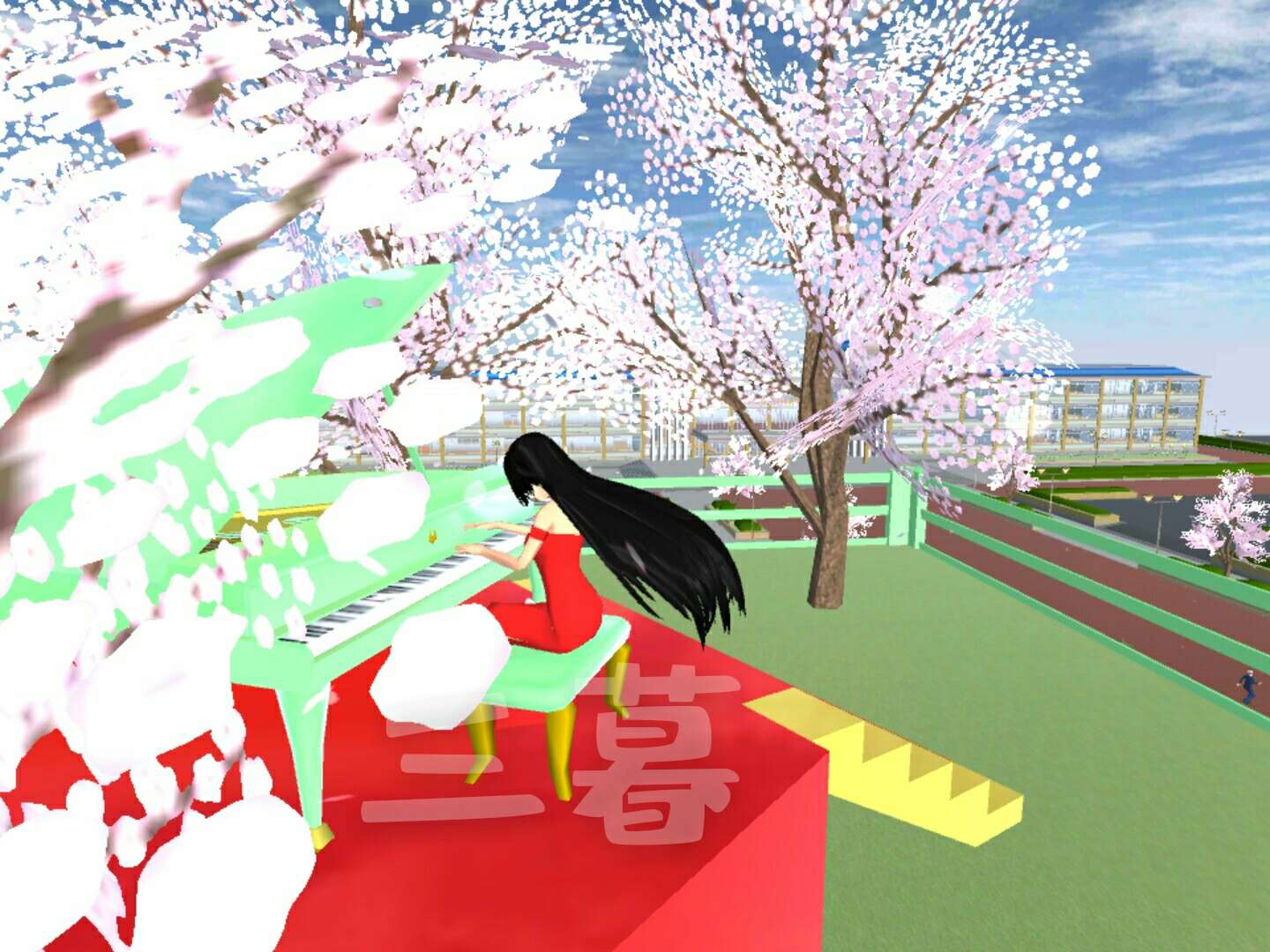 顶楼就是弹钢琴的地方,还栽了好几颗樱花树,在樱花飘落的季节弹钢琴真是很好看呢