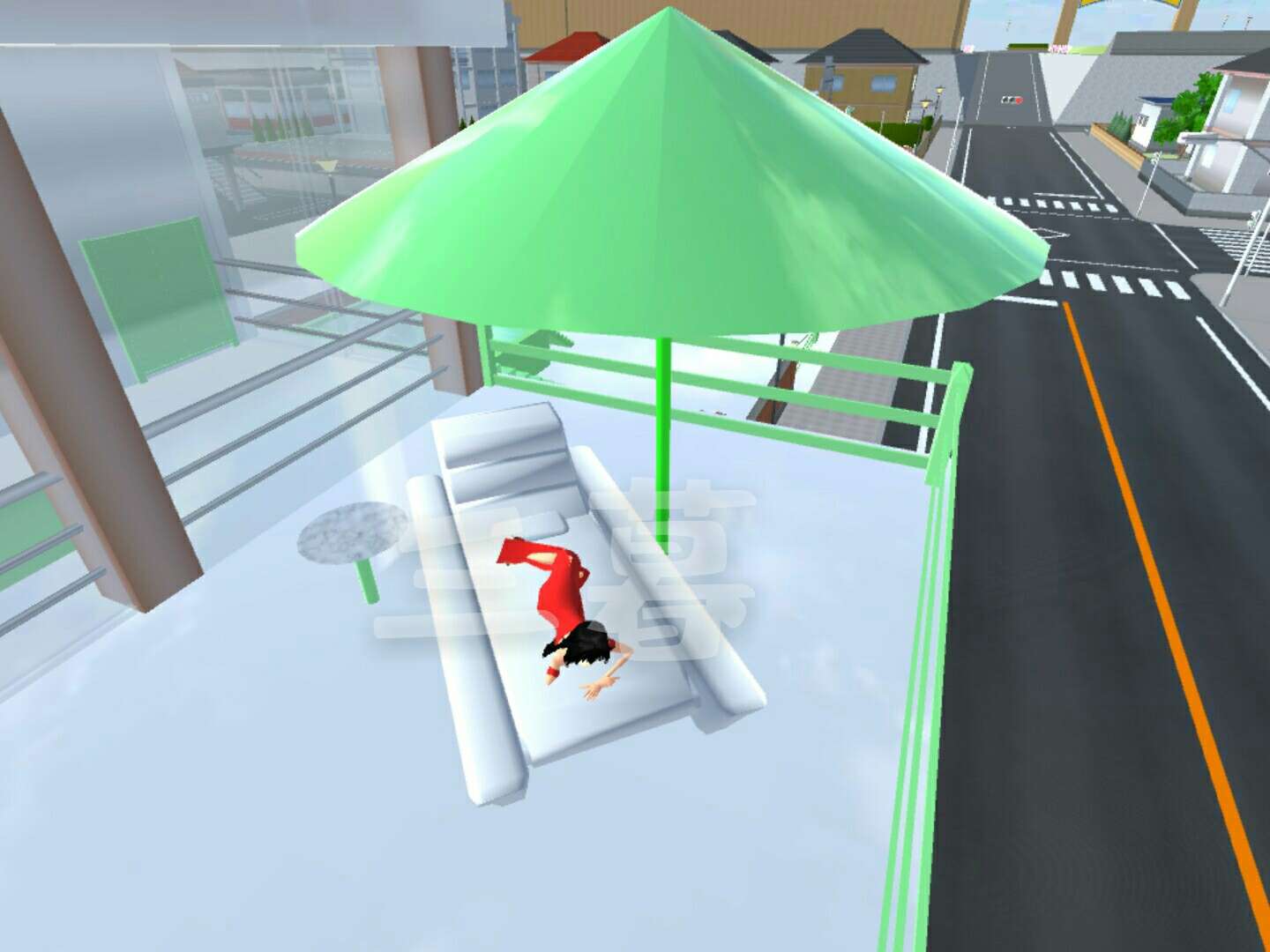 阳台上还有晒太阳的地方,旁边的小桌子可以放饮料