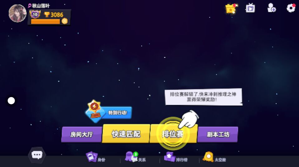 《太空杀》是一款背景设定在太空中的派对游戏,玩家将扮演一名在飞船上工作的船员,而飞船上还隐藏着不怀好意的内鬼,通过收集线索、讨论分析找出内鬼并将其淘汰!扮演内鬼的玩家则是要制造混乱并抓住机会击败所有人! 【游戏特色】 1.太空狼人杀 经典版本 经典太空狼人杀玩法,8分钟一局享受极致紧张刺激的推理乐趣!千万年轻人的选择,速来加入! 2.实时语音 互飙演技 专为手机优化,带给你更清晰的实时语音。更有自由发言、麦序发言等多种发言模式任你选! 3.四大地图 细节满满 飞船、基地、实验室、飞艇,四大地图,细节满满,呈现最原汁原味的游戏体验! 4.诸神之战 超多职业 首款内置超多职业的太空狼人杀,警长、小丑、医生、间谍… 让每一局都充满悬念,诸神之战等你来体验。 5.匹配优化 质量对局 分年龄、分水平的快速匹配,让你每一局都是质量局,给你提供最好的游戏环境! 6.剧本工坊 无限可能 创建地图、自定义规则,创造你的专属剧本并邀请好友一起玩。更有可能获得官方推荐,为你吸引海量粉丝!