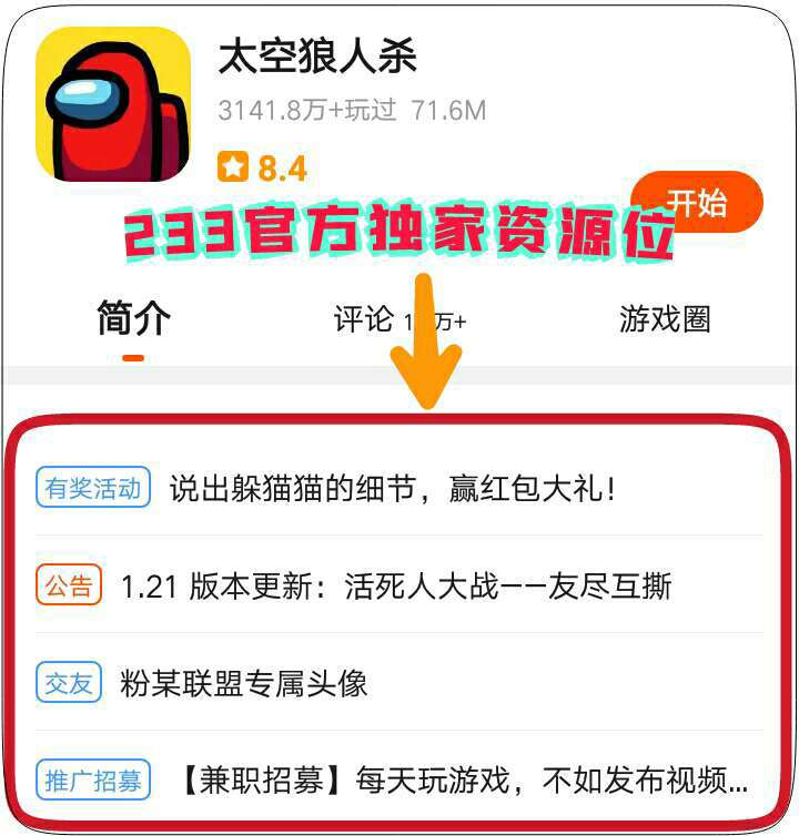 1,《太空狼人杀》官方独家涨粉资源位