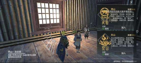 1:打开人物面板,点击阵营那栏旁边的感叹号(西山指当前阵营;冶业官是离可以换阵营的衙门最近的公交站)
