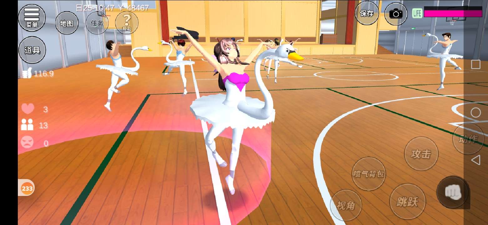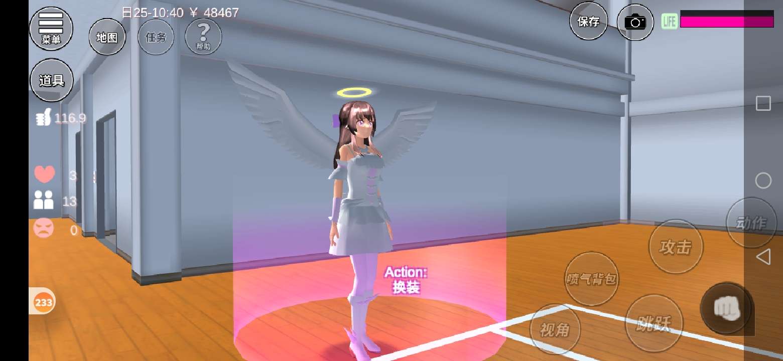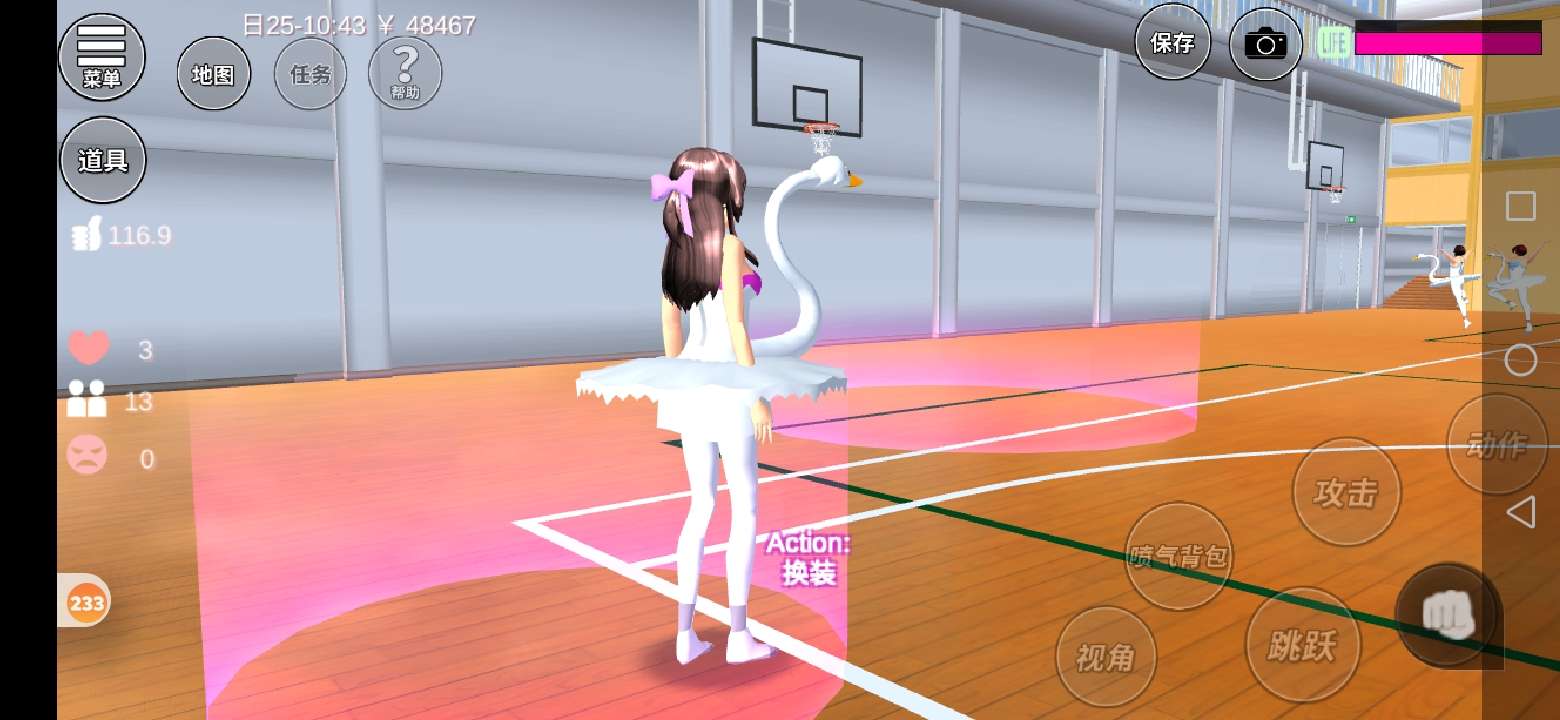 来到体育馆再去光圈的地方进行换装。