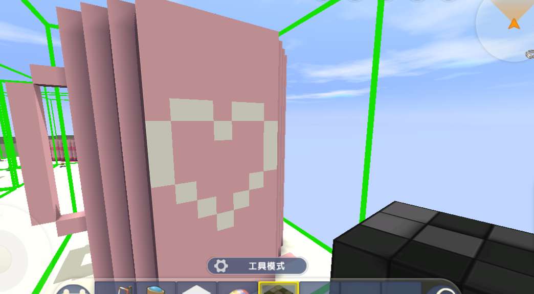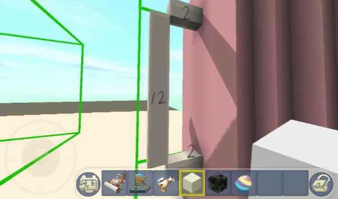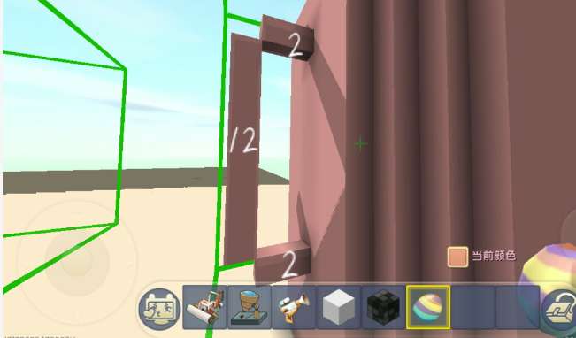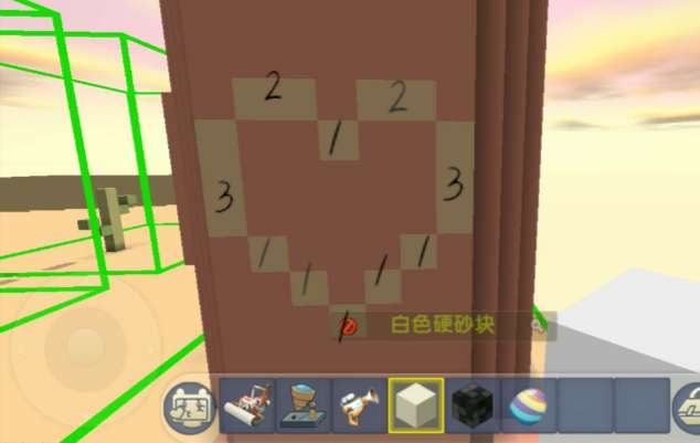 然后在白色硬沙块的左面在放一个白色硬沙块.之后离一格斜着做出垂直的把手部.然后具体的大小如下图所示.
