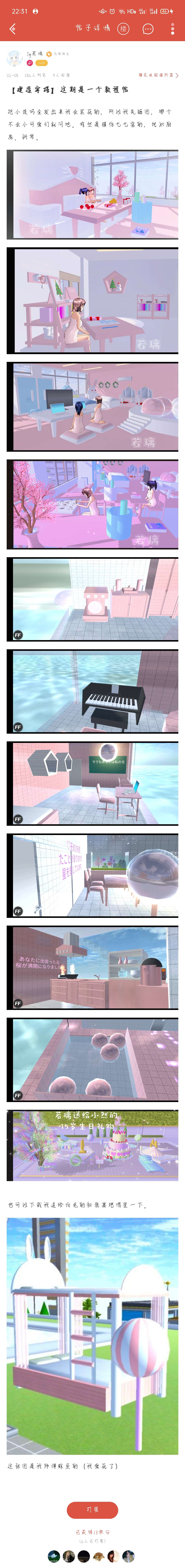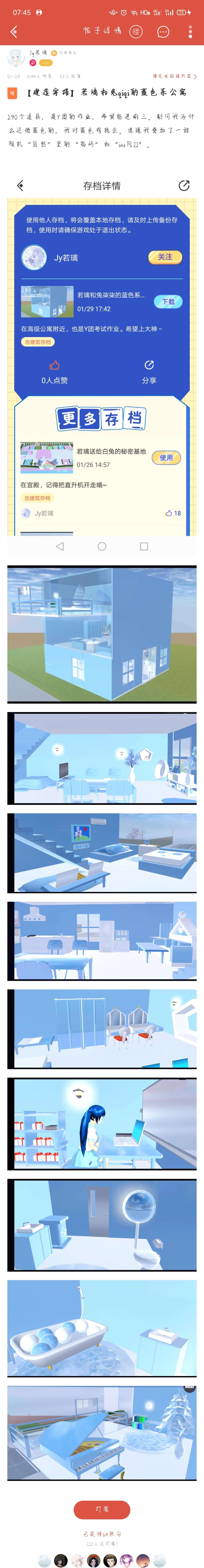 大家好,我是来自CC的若璃,该软件樱花社区的版主之一。师傅鲸鱼,师姐妹老兮、洛塔、柒、浅夏(小慕子)等。和我最熟悉的是浅夏,不过她似乎不在此平台。下面是我的大部分建筑存档,我会把重心放在CC上,希望在这里不要被盗建筑。