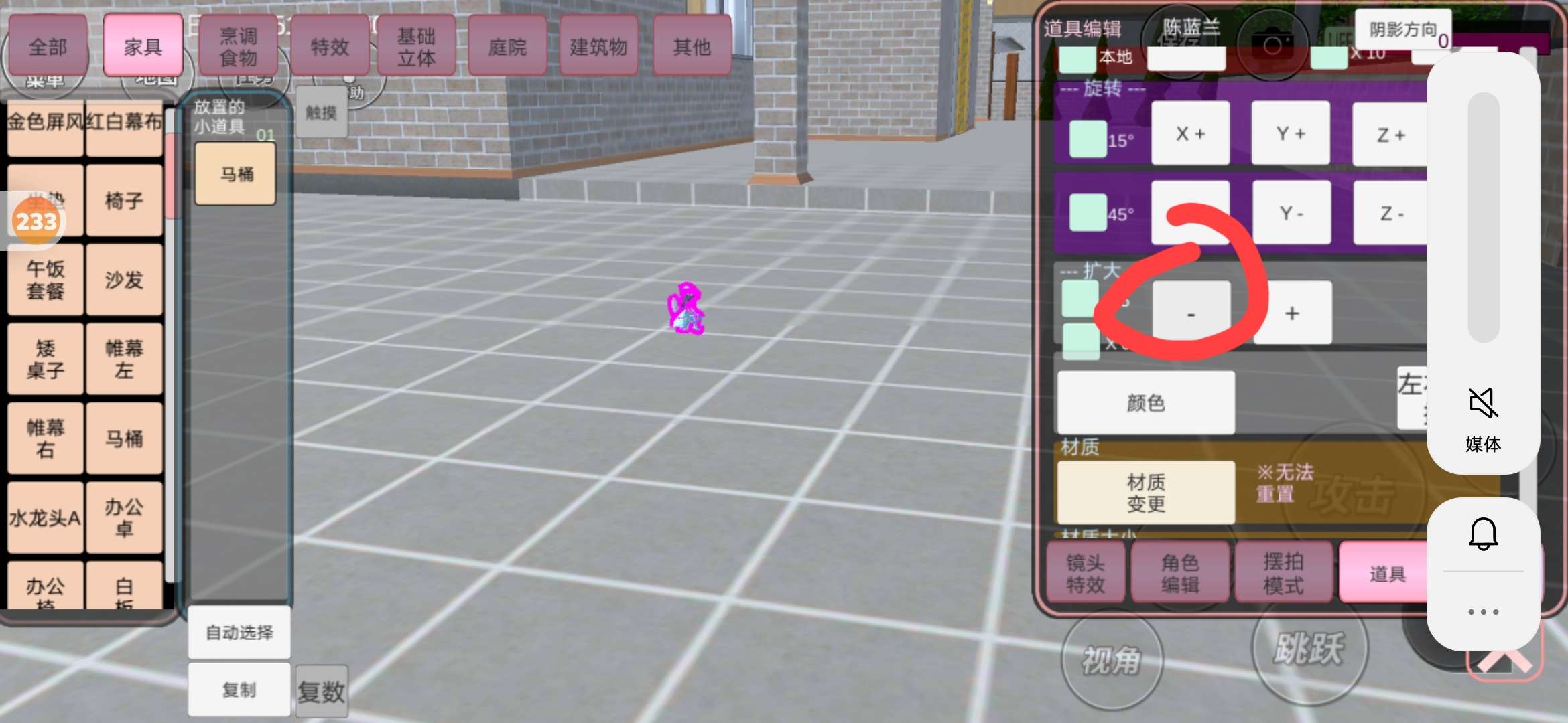 打开小道具找到马桶
