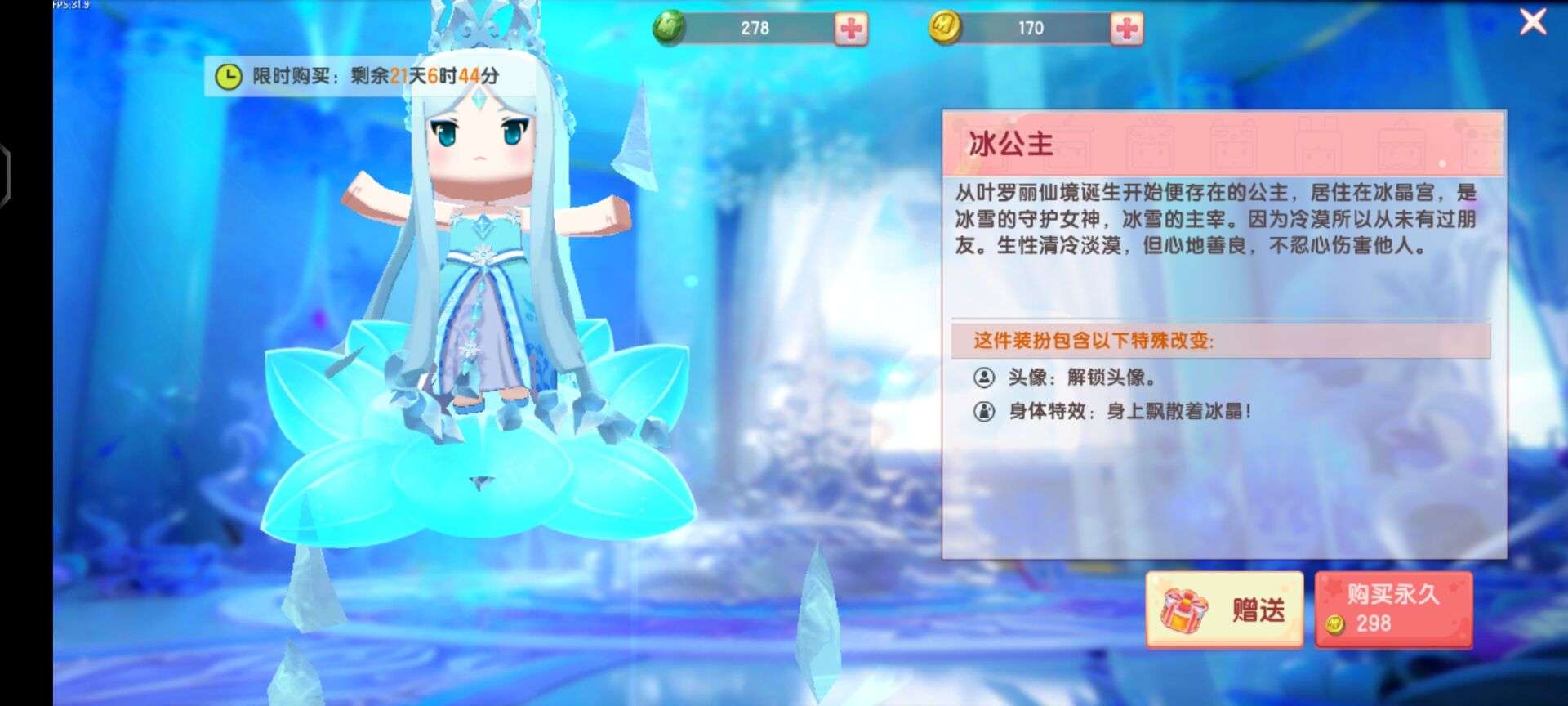 头像:解锁冰公主头像。