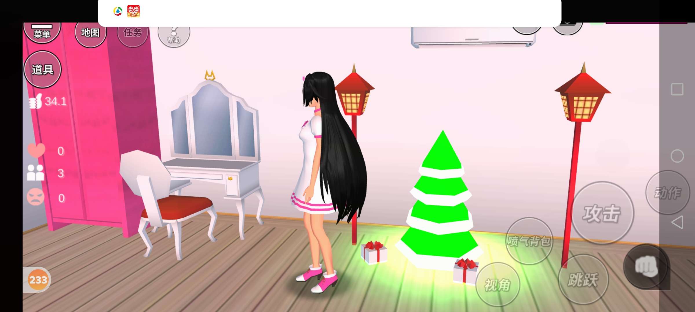 装饰游乐园前面的白色小屋。