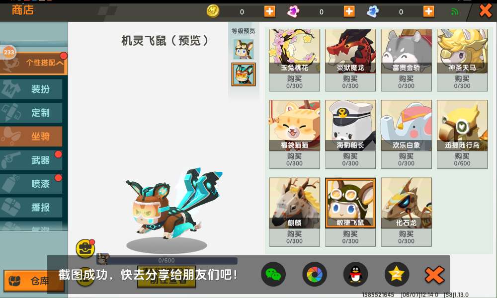 钱发了脚信息,因为我那个电脑有点不太好嘛,所以那个陌生的熟悉Zo7 ,你有皮肤和坐骑吗?
