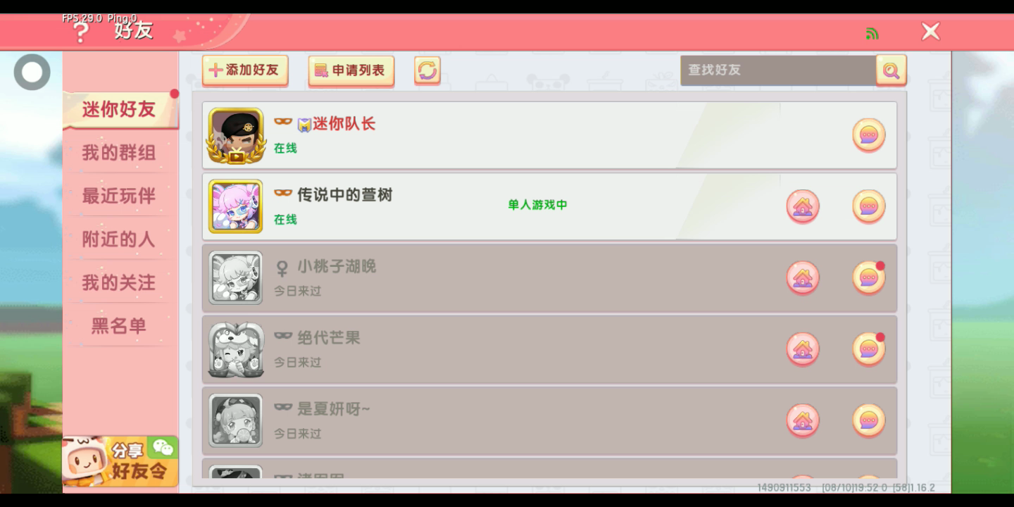 加迷你世界好友,主要是没人陪我玩,迷你号自己看,最重要要和我的版本一样,我的版本是1.17.0