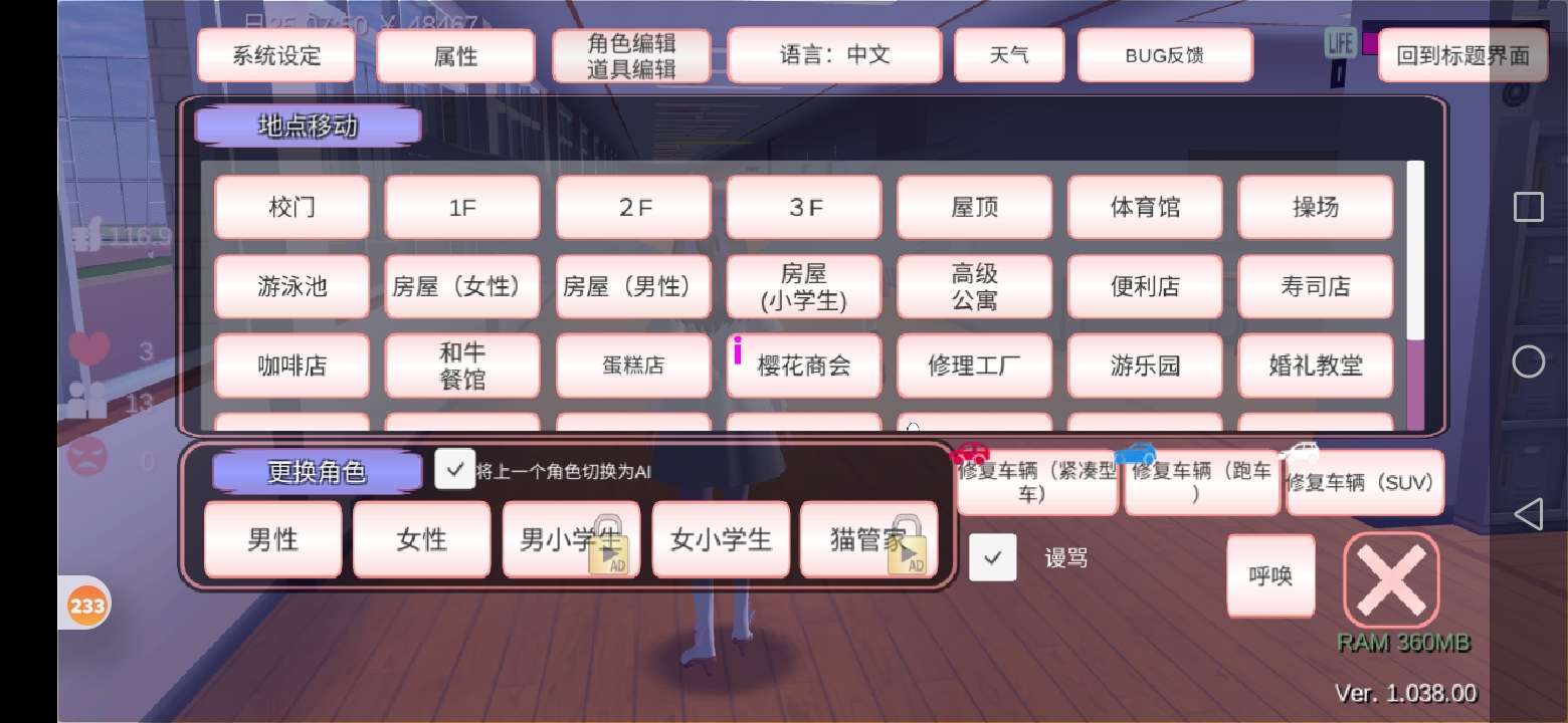 当学生来了,走到光圈,点击动作换装。