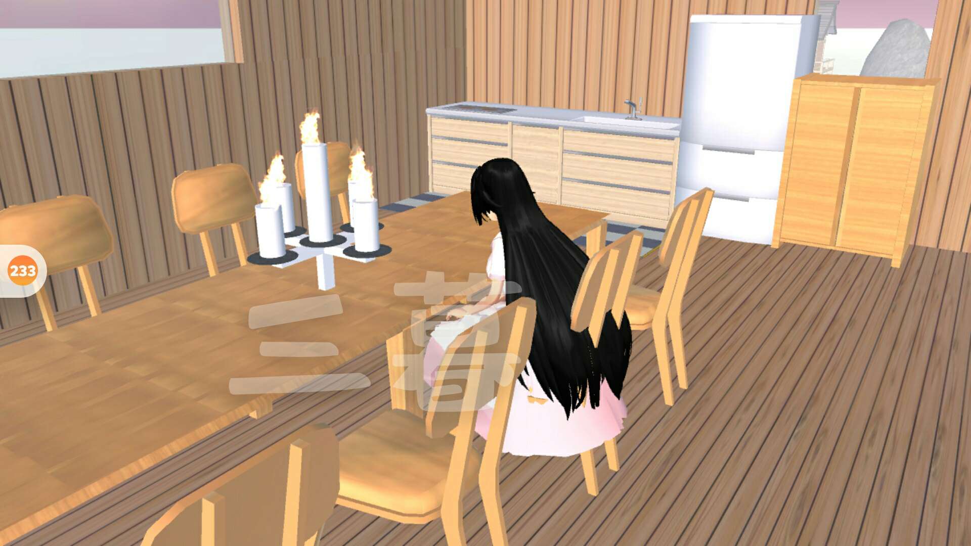 厨房餐桌,餐桌上还有蜡烛,