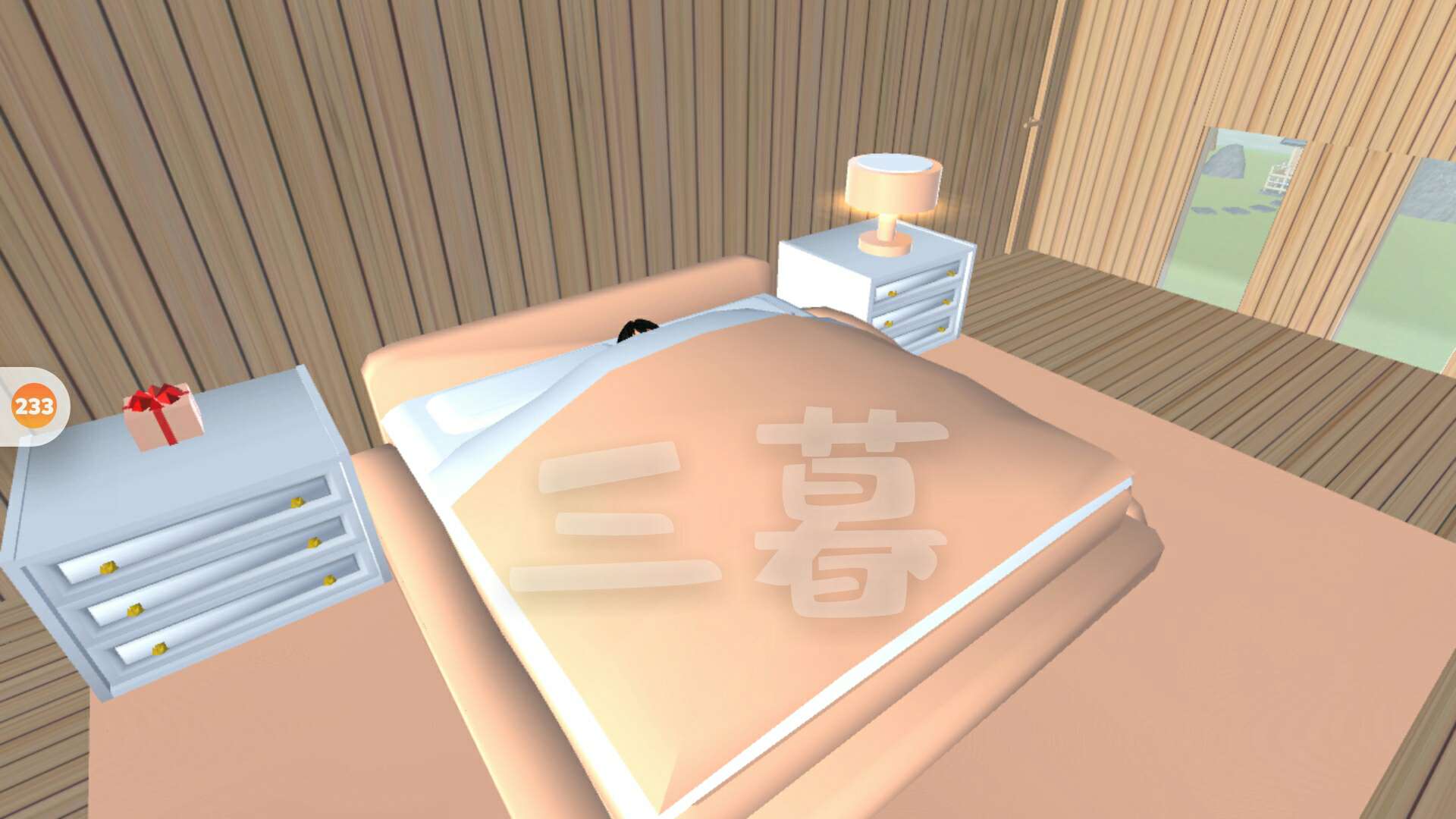 右边是以大部分肉色为主题,被子把我的脑袋挡住了,就剩个头顶,那两边东西都是肉色的,自我感觉是很温暖的颜色,我挺喜欢用的,我感觉这个这个颜色真心适合木屋