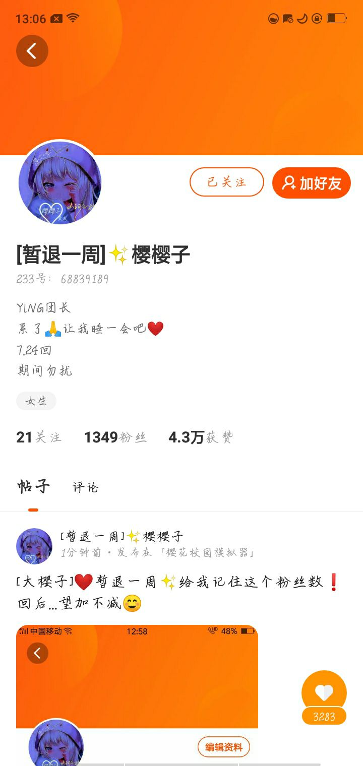 给她涨涨粉,她说要退一周