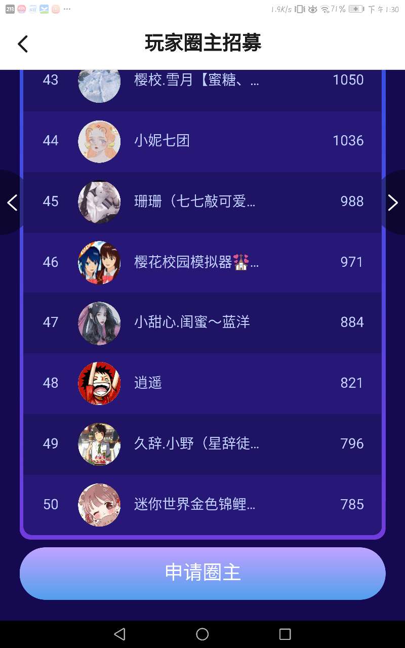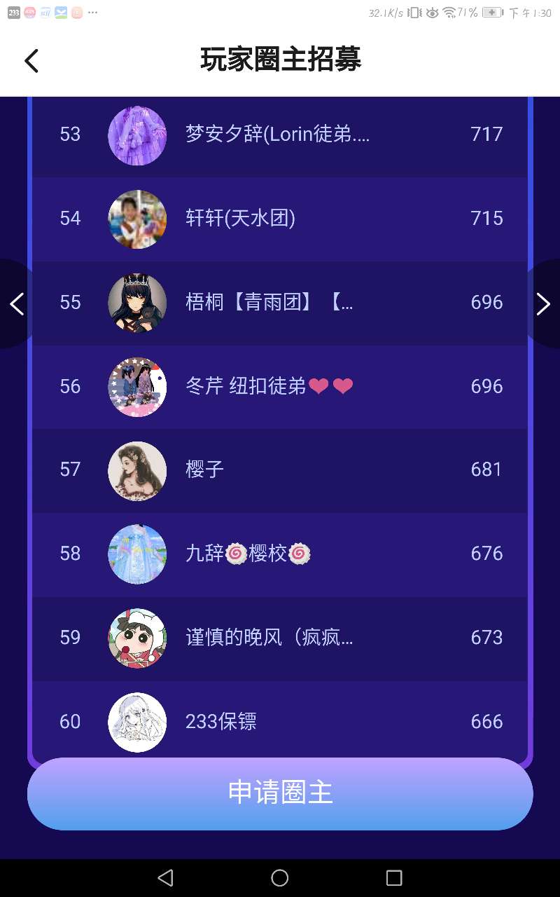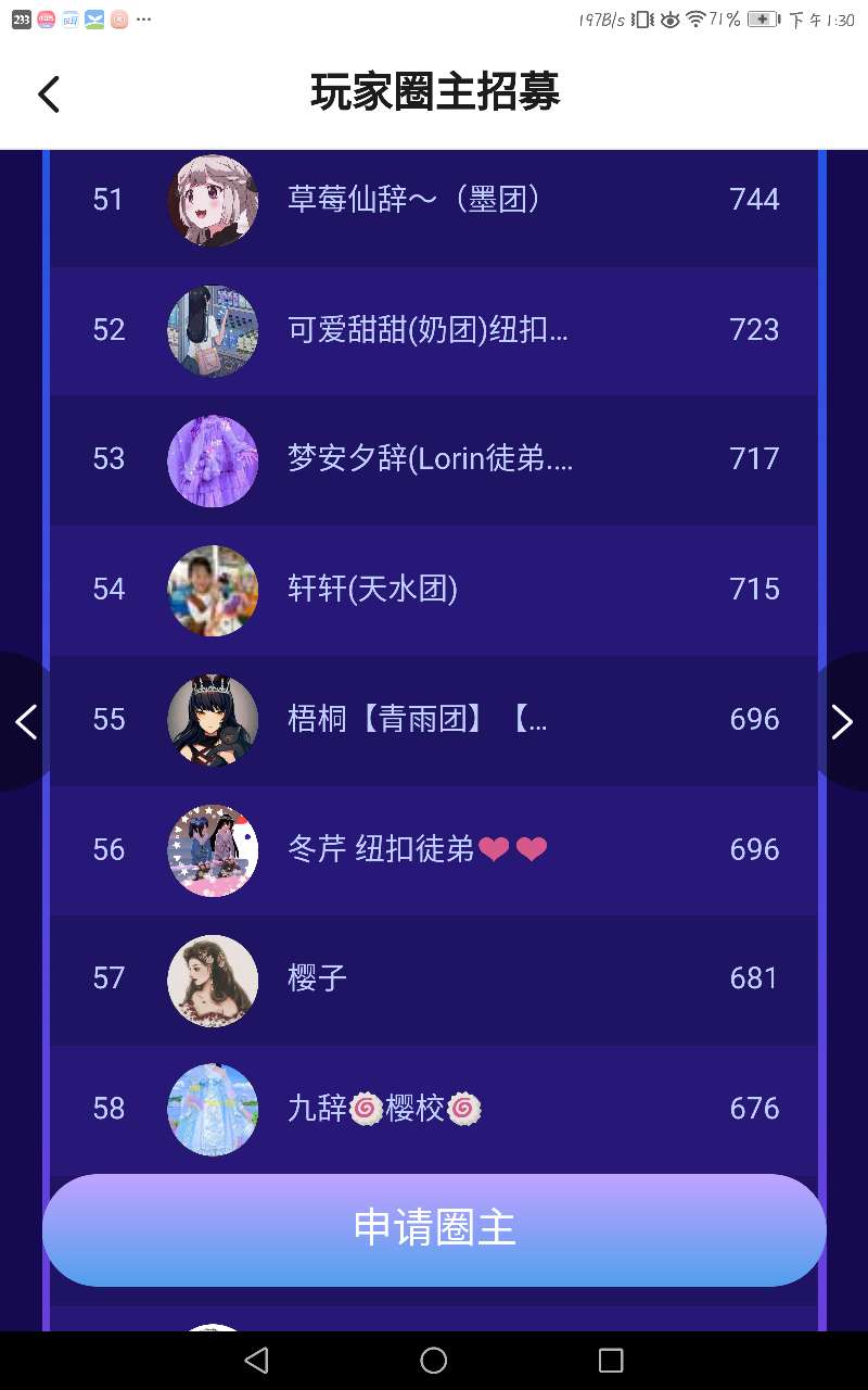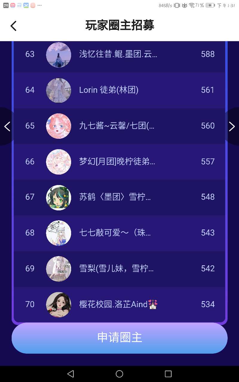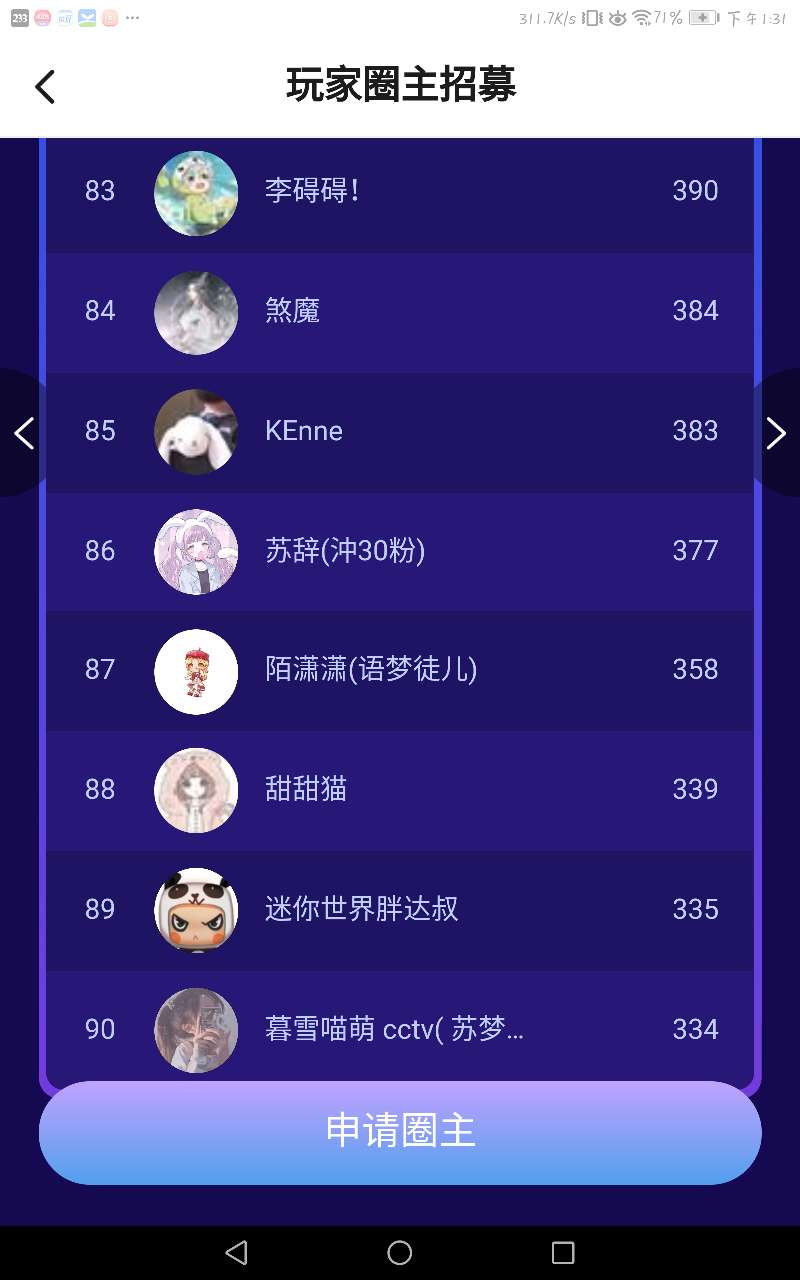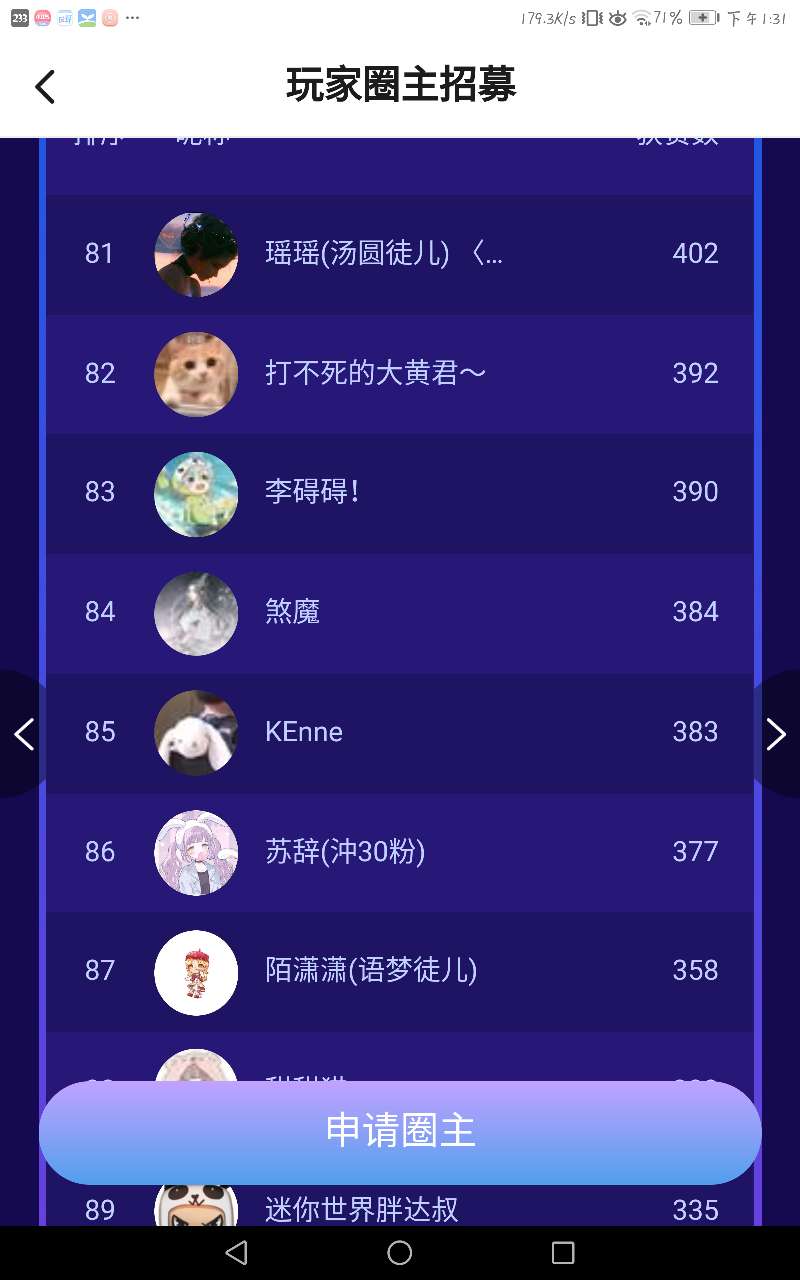 圈主排位吖 快来看看你是第几名叭~