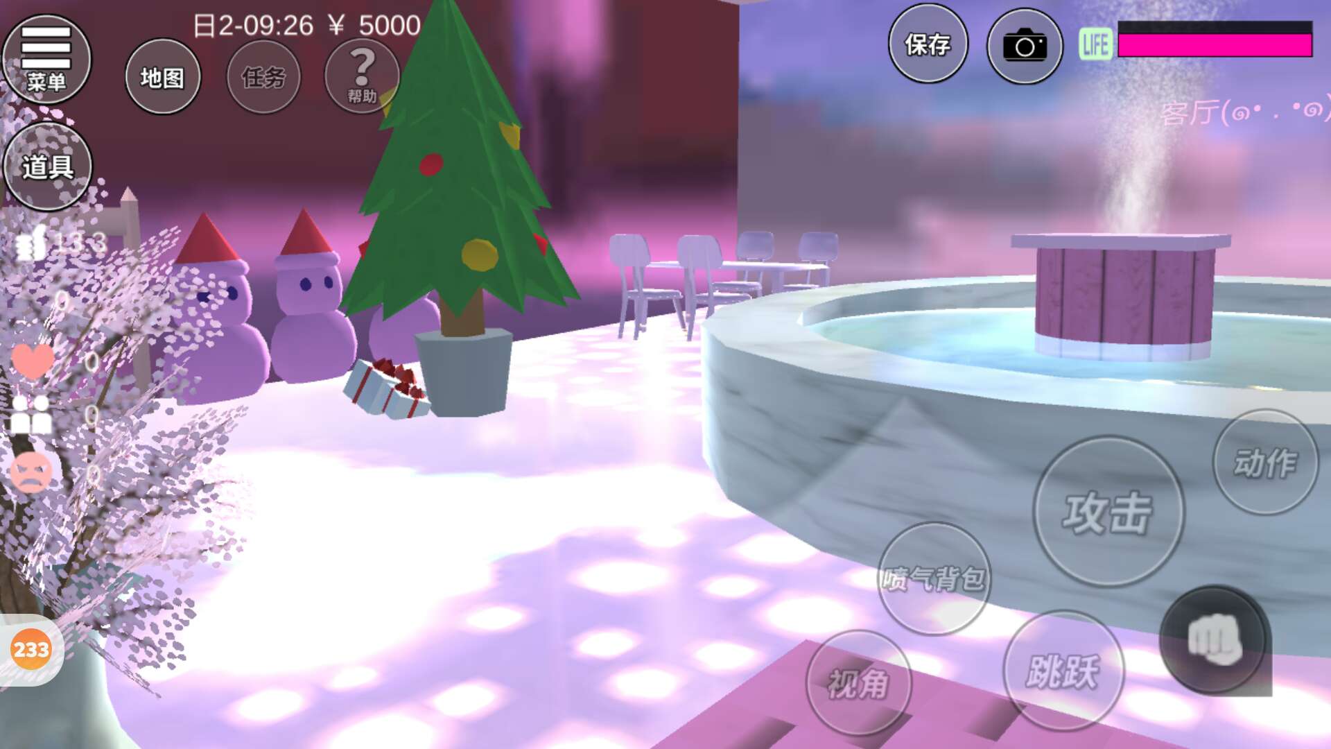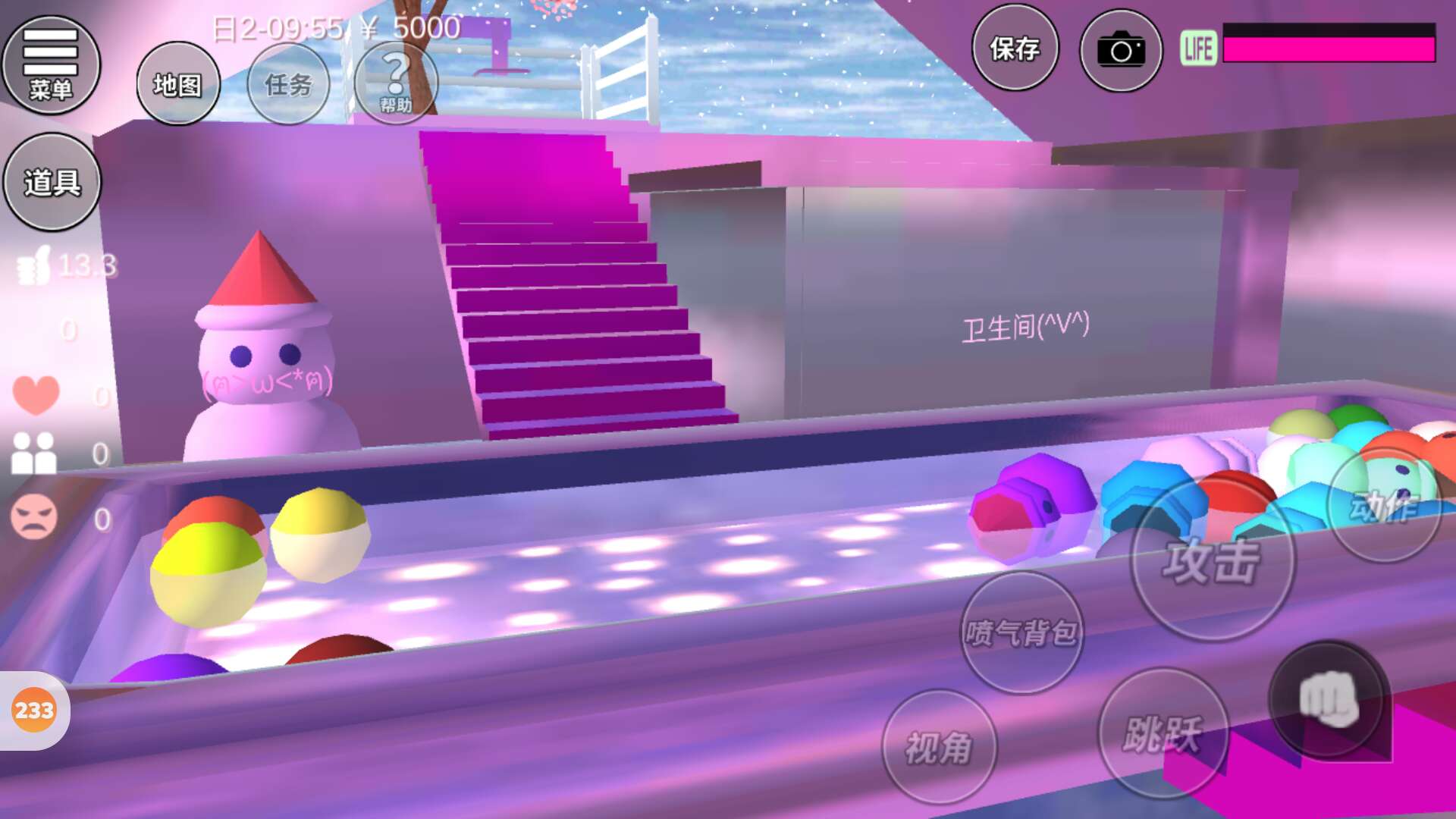三楼是一个大池子,里面我放了很多东西,有雪球,还有雪人,我把他们都缩小了如果不缩小就放不下了✨