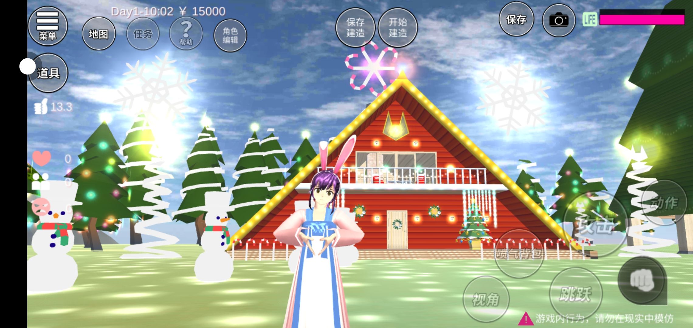 今天在樱校打卡宫殿、圣诞屋、爱心房子