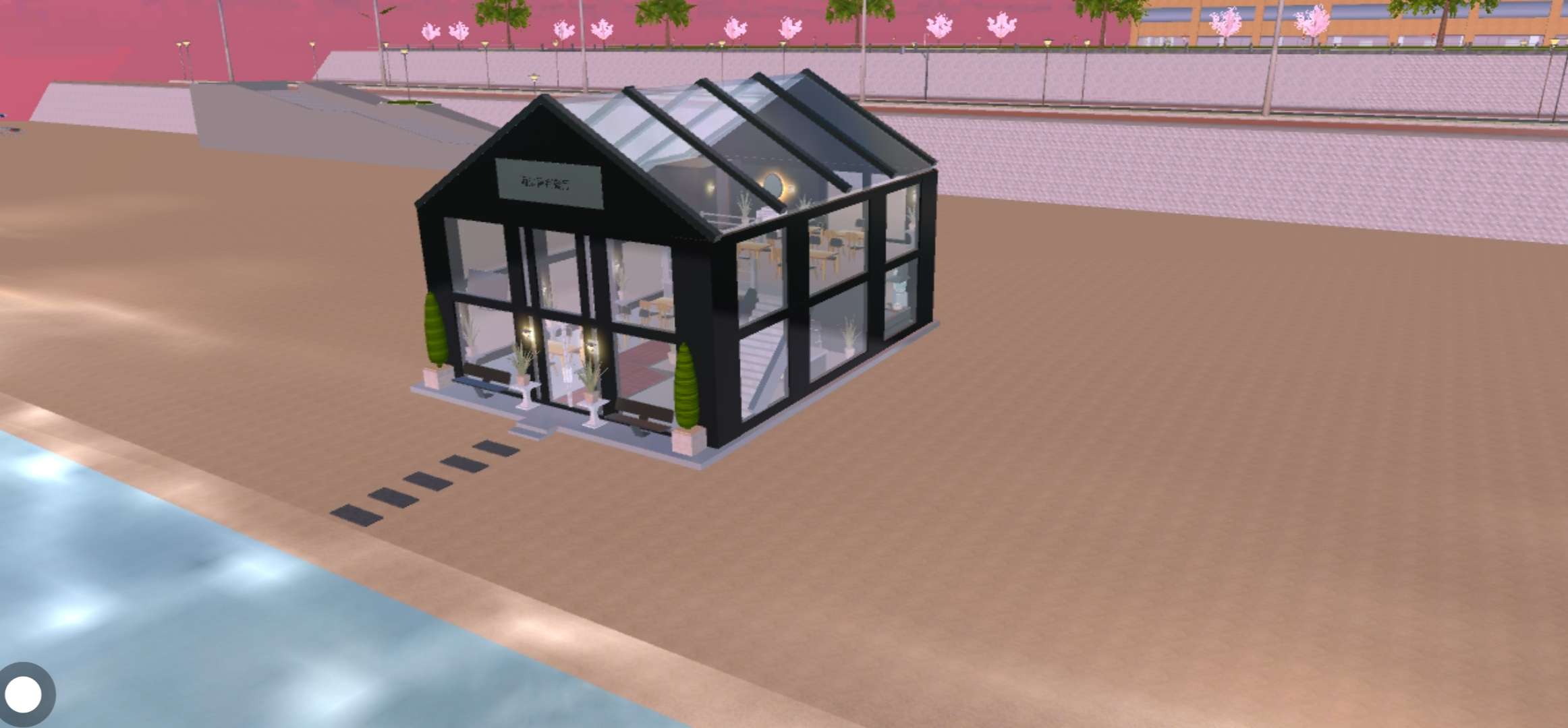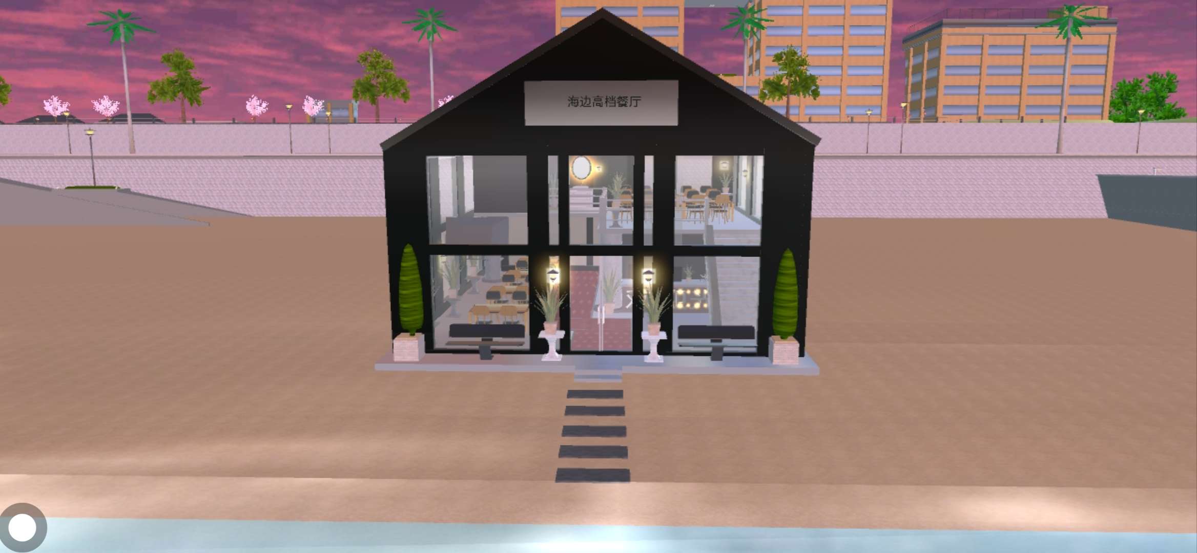 餐厅的前面还铺了石子路