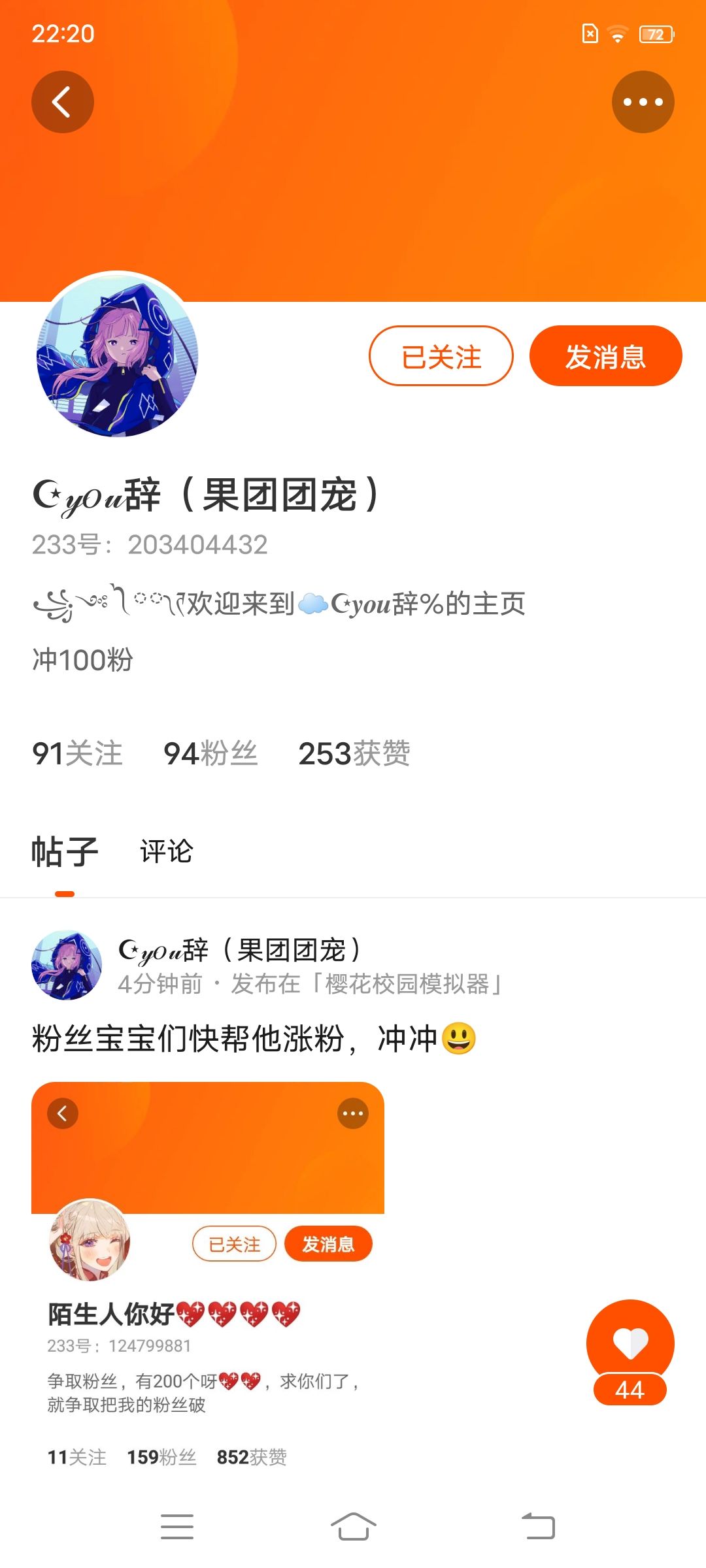 帮拽姐老二涨粉到二百
