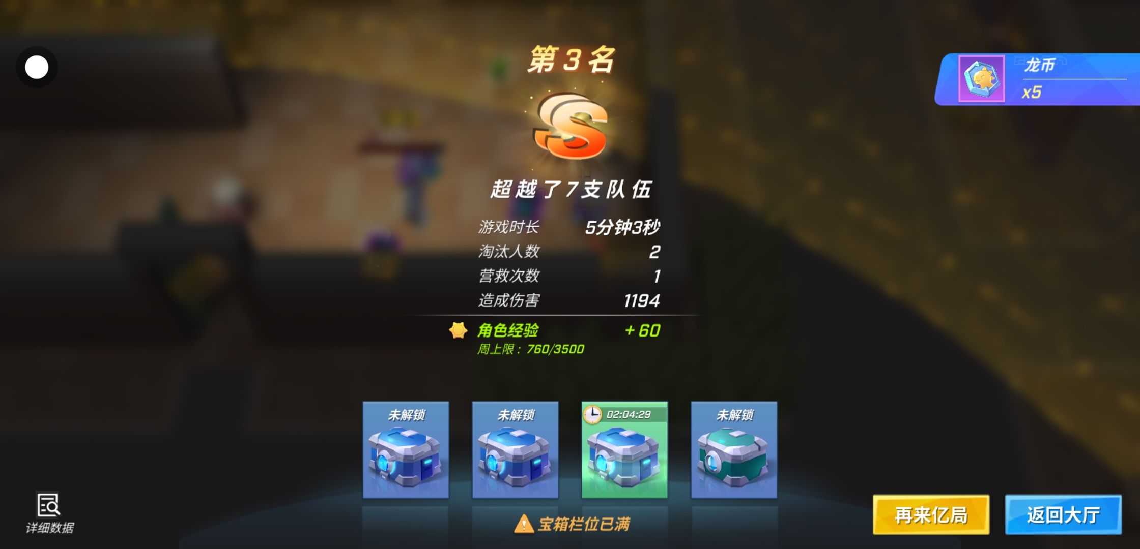 组队大乱斗赚了五个龙币!!!