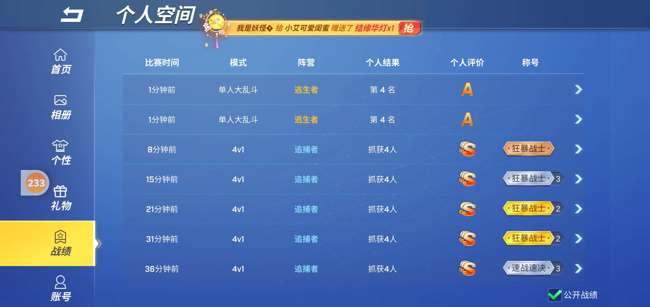更新后Bug越来越多延迟开门这个战绩统计错误的bug之前说修好了现在更严重了 白日梦判我挂机图毁完了