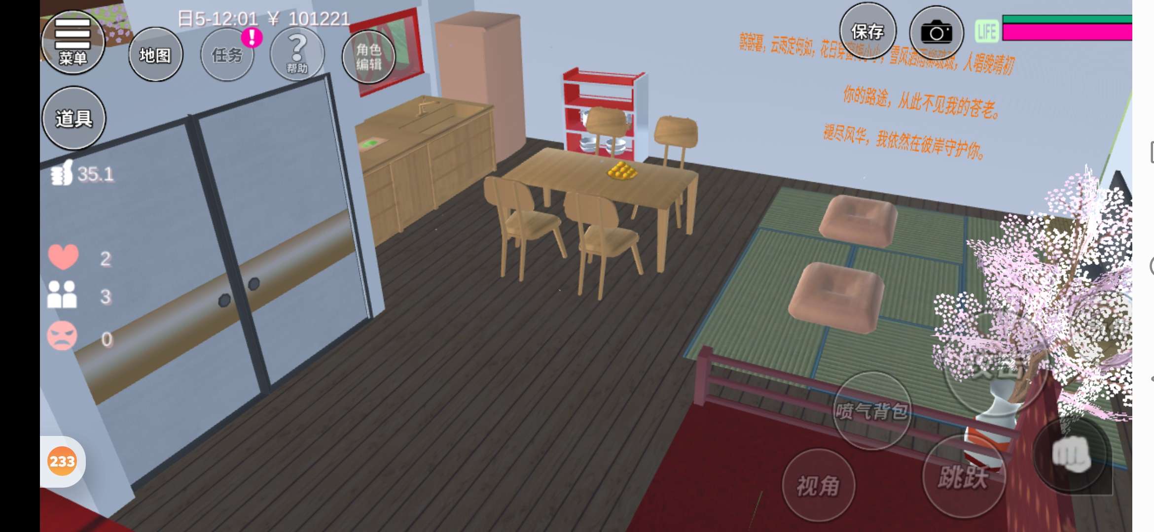 客厅旁边的墙上写了一些古风诗句呢!