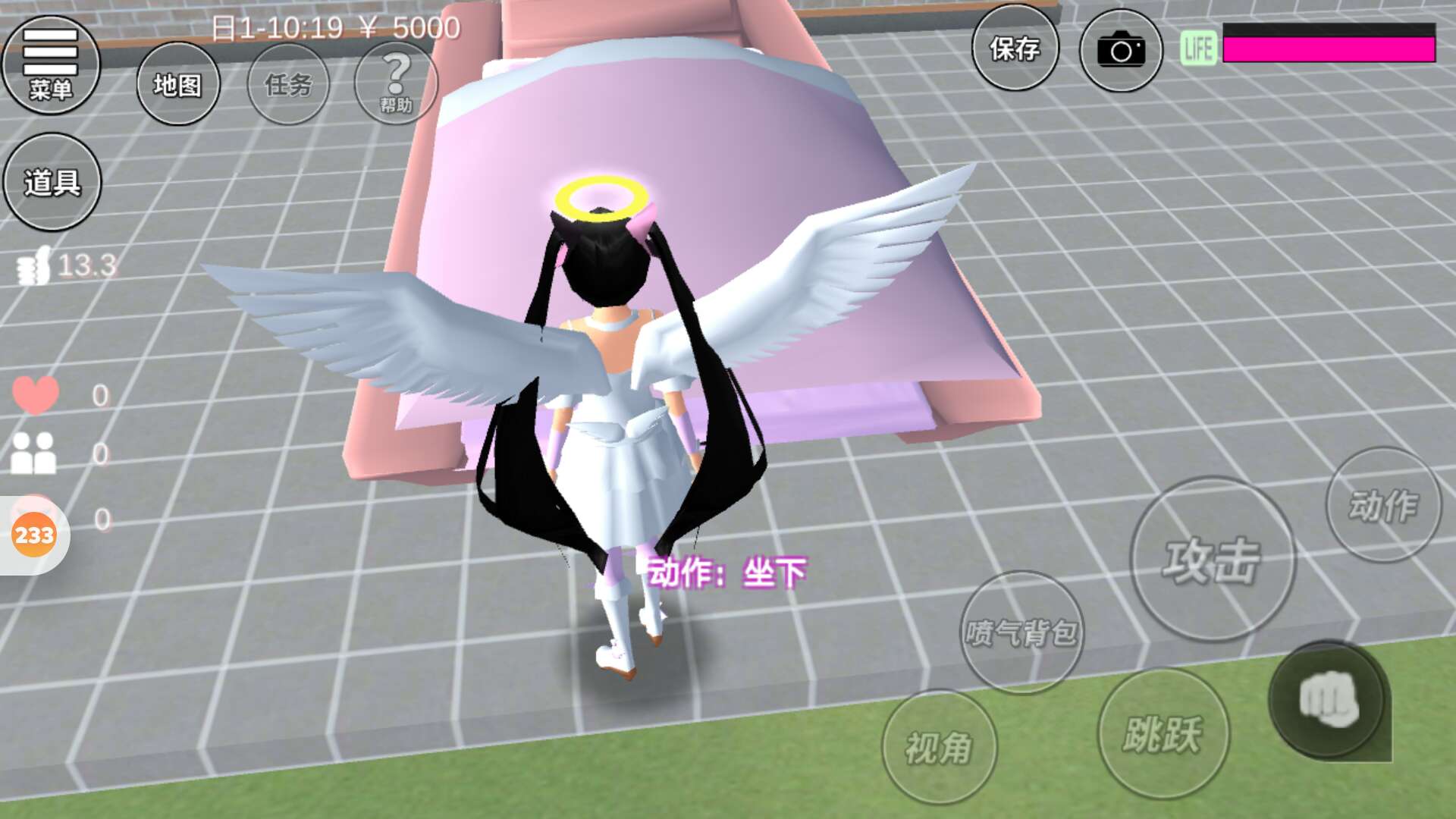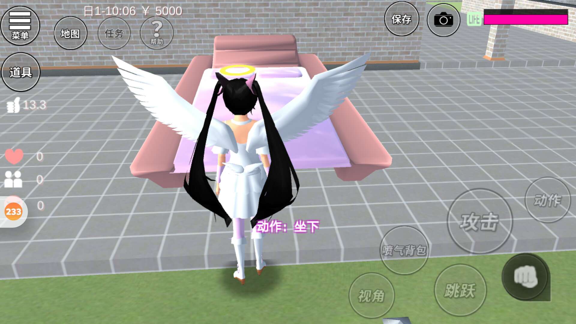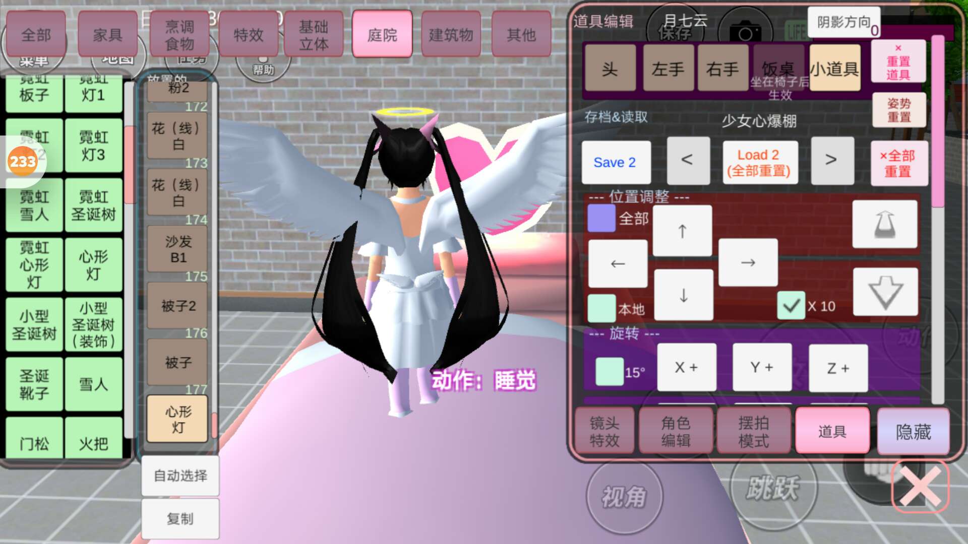 点开庭院里面的心形灯,不用调节大小。一到沙发床床头。 沙发公主床就完成了。