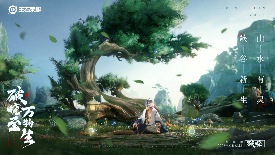 参考中国园林造景,将自然中的一草一木、一山一石,结合王者特色进行当代演绎,打造一个源于自然但超脱自然的“王者园林”,体现自然与人文的有机融合。