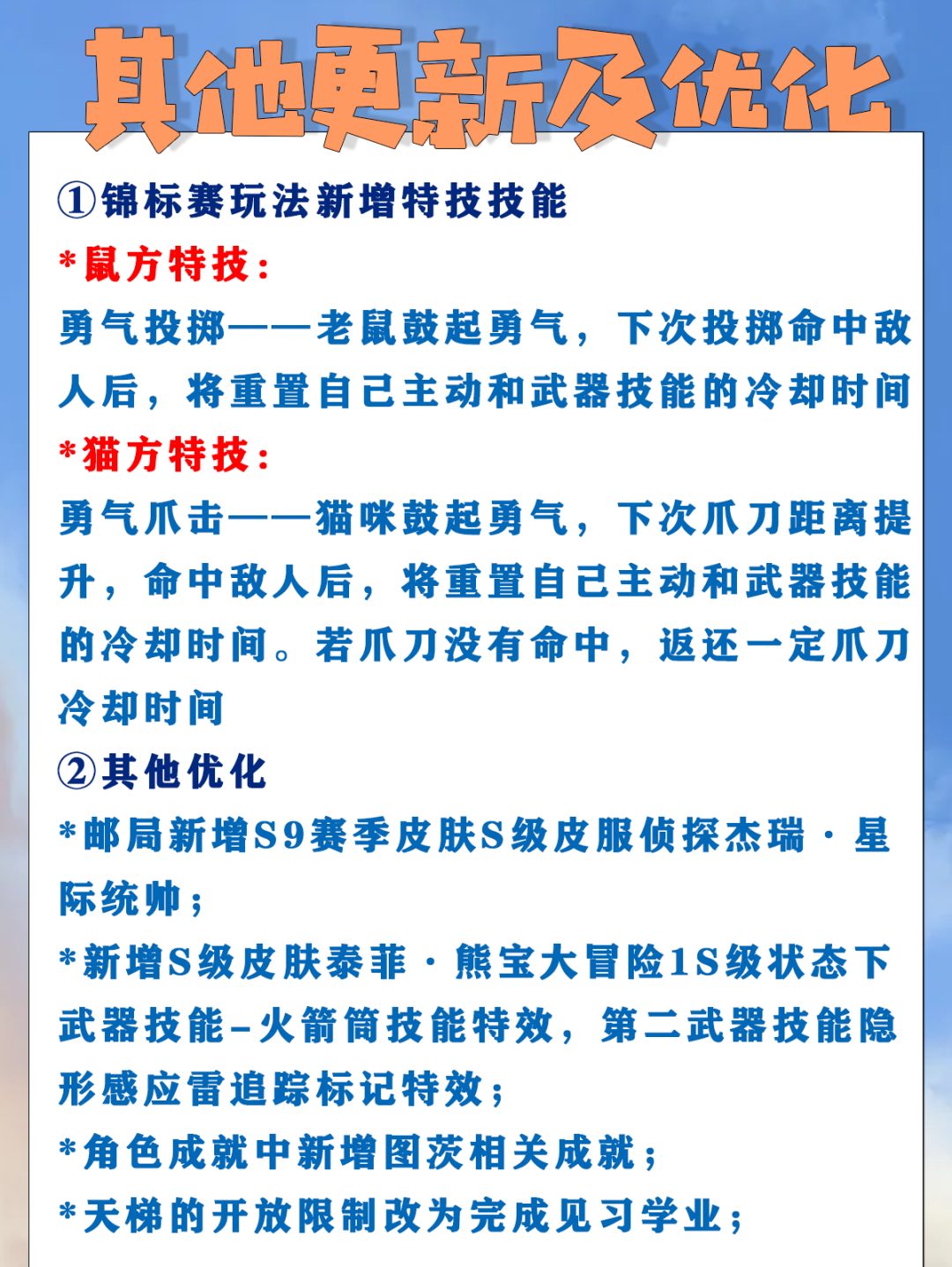 锦标赛玩法新增特级技能
