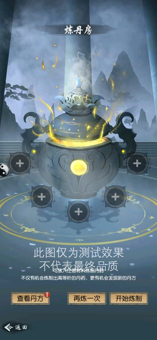 炼丹房紧邻仙药园,游戏中则可以在宗门-洞府中找到炼丹房。道友在仙药园种植的各种草药,都可以通过炼丹房中这鼎青铜炼丹炉转变为具有特定功效的丹药。