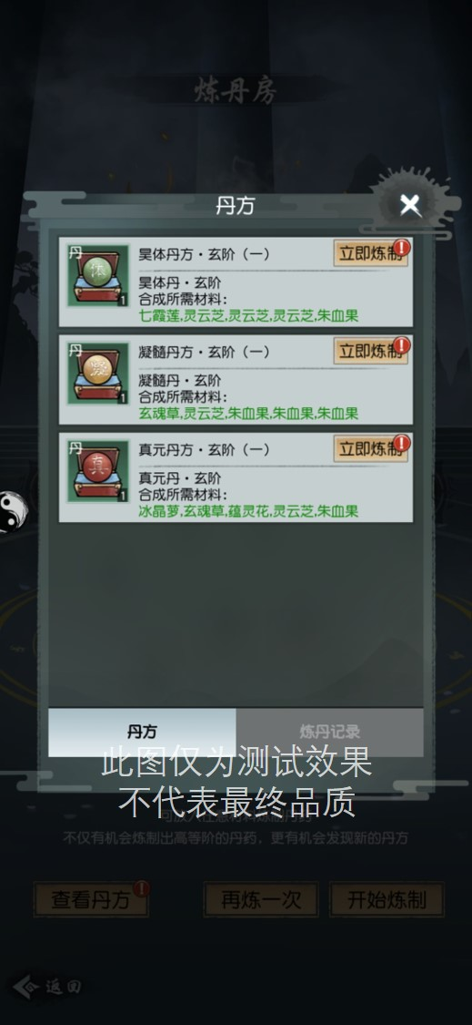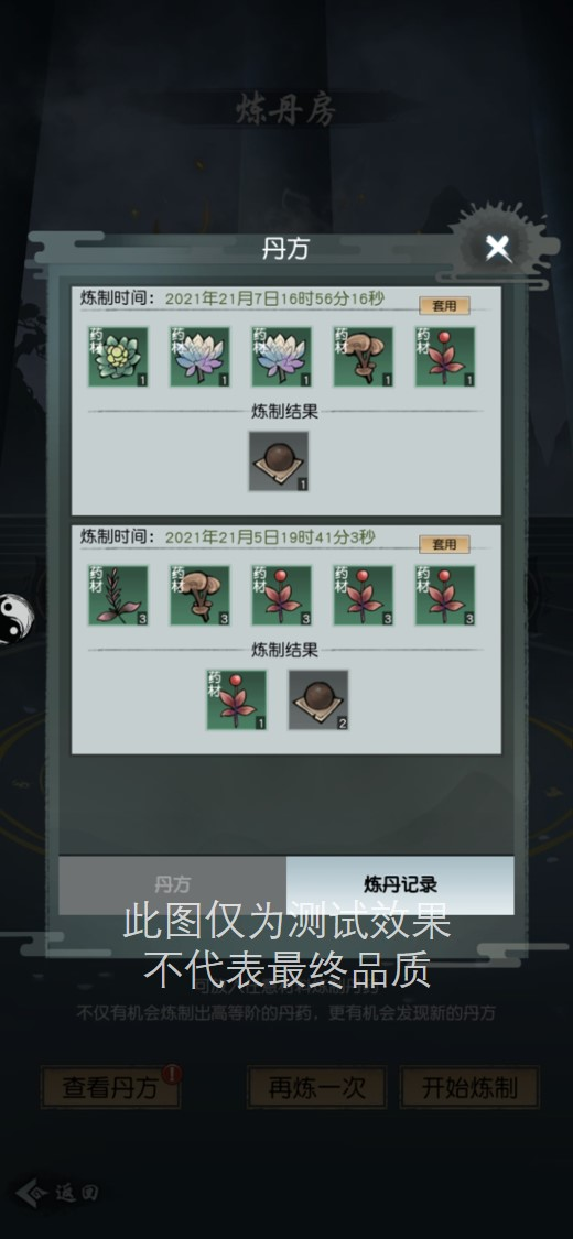不过这几副丹方也仅仅只是冰山一角而已,道友可以自由随意搭配,根据自己喜欢加入特定的原料,探索各种隐于世间的隐藏丹方。在最新的测试版本中,道友还可以查看自己的炼丹记录,从此麻麻再也不用担心我忘记无意中发掘的隐藏配方了~