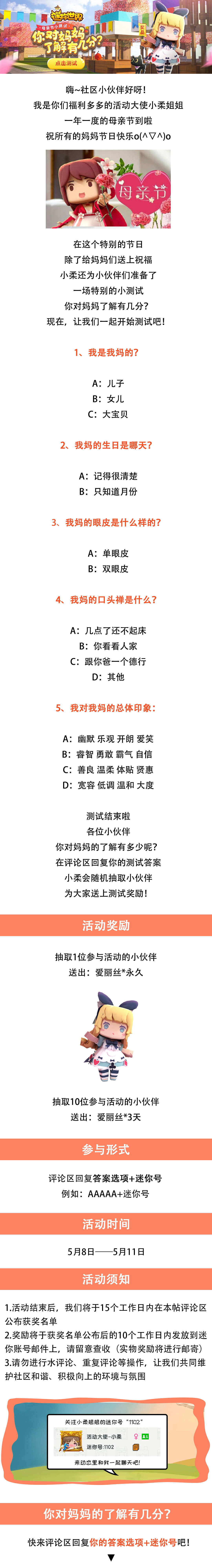 【已开奖】你对妈妈了解有几分?参与测试赢爱丽丝!