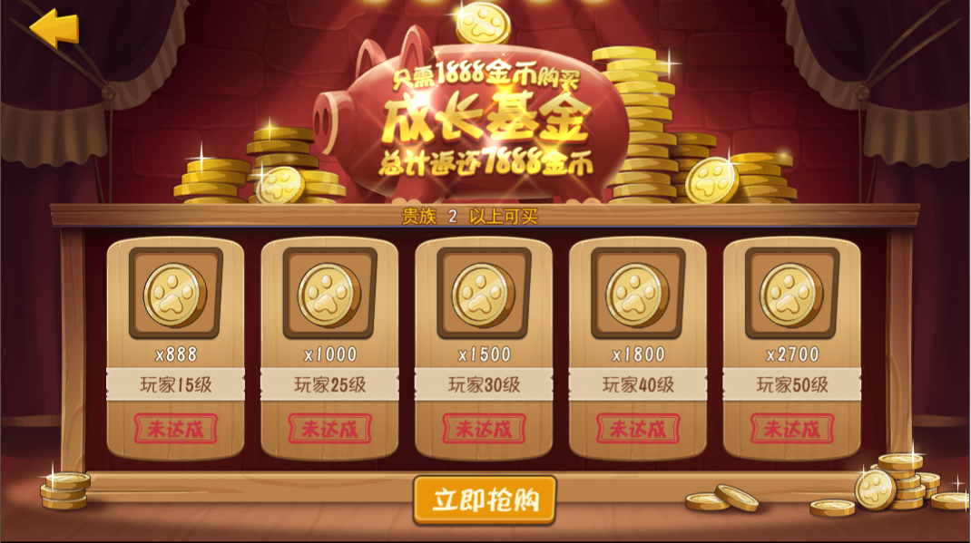 点评:V2的特权成长计划,这个也是很常见的福利了。消费1888金币,随着玩家升级将分段总共返还7888金币。有的玩家可能要问了:1888金币也不是个小数,充值V2怎么够呢?对于这个问题请看攻略:《新手如何快速获得金币》