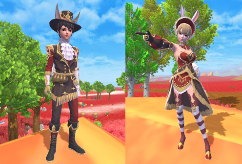 “萌萌的小兔子逃到仙境里去啦!”全新萌兔出逃服饰即将上线,女生版是一套复古的宫廷风连衣裙,仙境头饰是一顶优雅可爱的红色小帽子,蕾丝缠绕的帽顶露出一对尖尖的粉白的兔耳朵。男生版红与黑的配色加上金属装饰,高贵典雅,黑色礼帽上金色丝线刺绣的王冠和星辰庄严端正熠熠生辉。