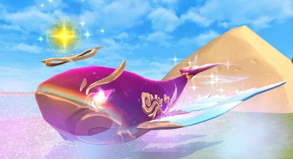 仙游浮鲲为水陆空三栖坐骑,携各位探险家们在贝雅内陆、天空、水中遨游前行时,还会变换为对应的三种形态。在陆地时,两双羽翼和尾羽上下轻摆;翱翔于天际时,展开另一双更宽大的羽翼,所过之处,好似留下漫天星河;在水中畅游时,羽翼收回,减少阻力,额前伸出明灯,在深海中照亮前方。