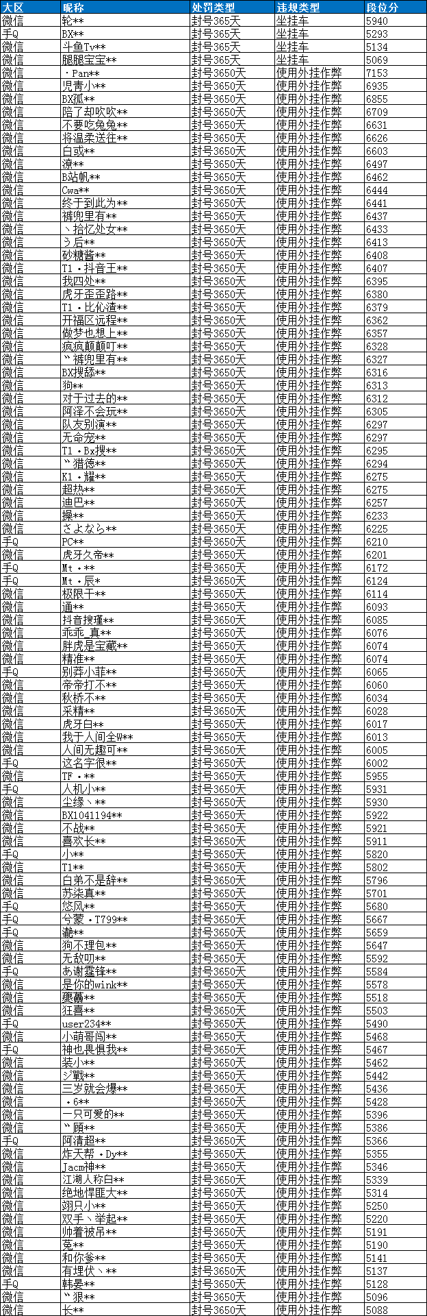 近期违规特种兵名单(部分名单):