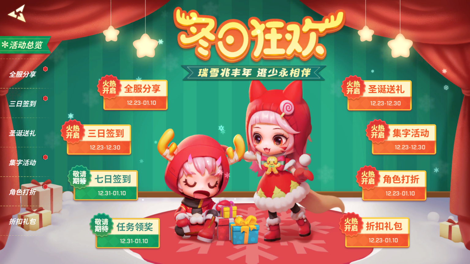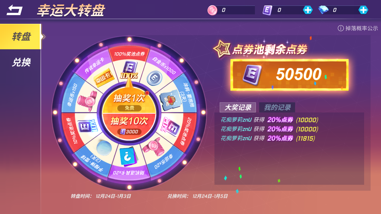 12月24日至1月3日,少年们可以通过转盘获取海量奖品和幸运币~