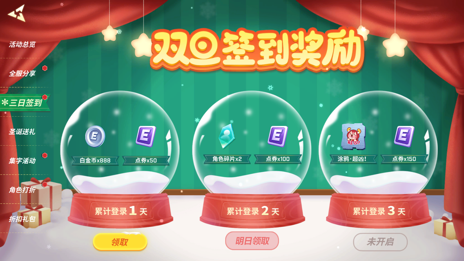 12月23日至1月10日,少年们登录游戏进行签到即可领取对应奖励(丰富资源奖励和限定涂鸦)~
