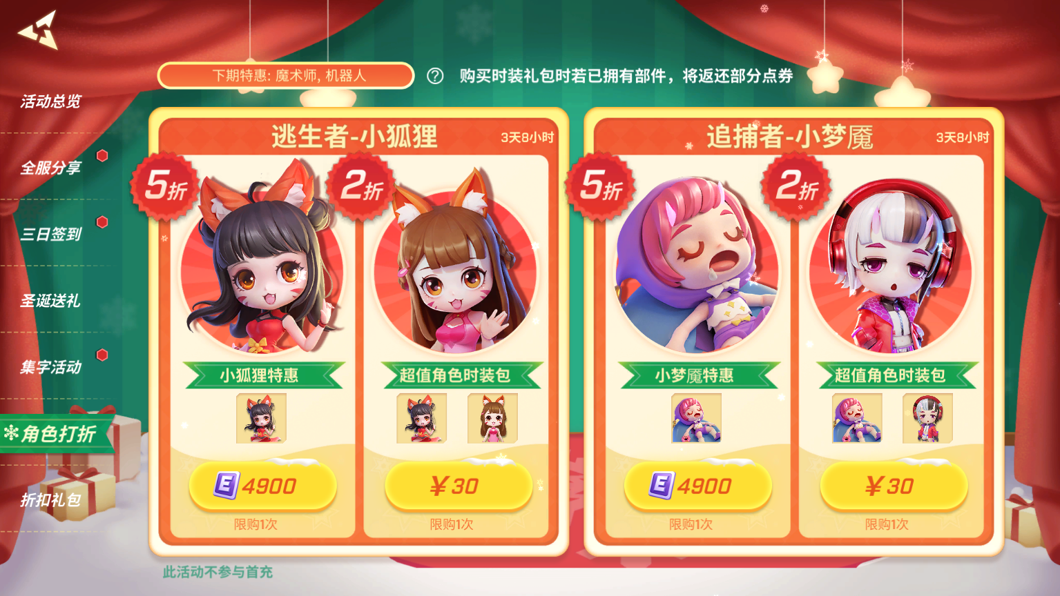 12月23日至1月10日,用特惠价格即可购买未拥有的角色及时装!
