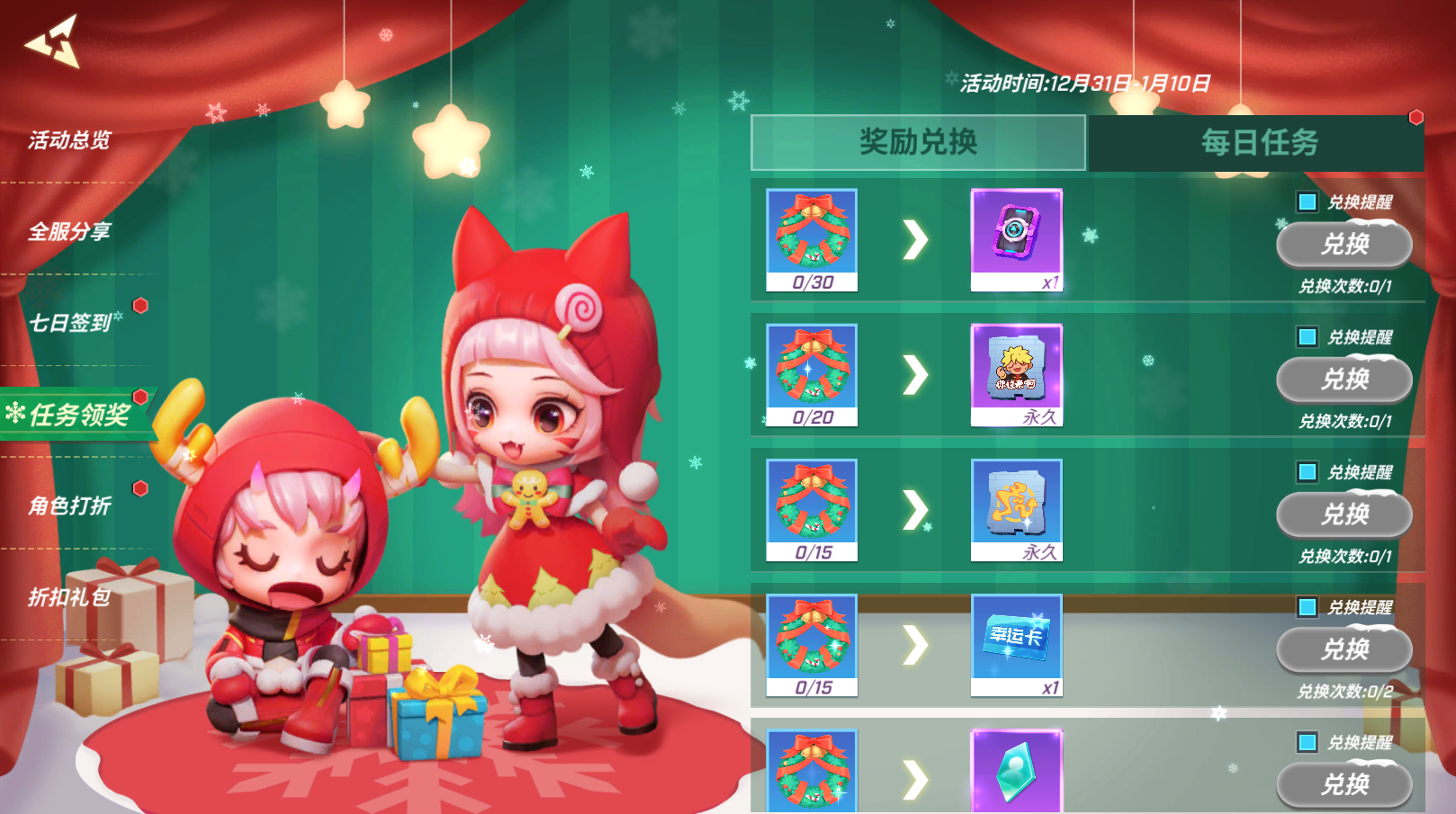 12月31日至1月10日,少年们完成每日任务即可领取【圣诞花环】!