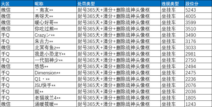 近期部分使用外挂违规特种兵名单: