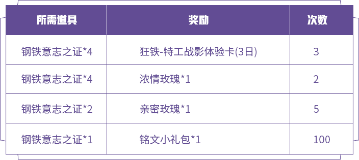 ③商城购买:商城特惠将限时开启售卖,每人限购钢铁意志之证*5,每个售价钻石*60