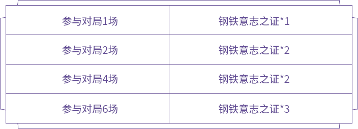 ②对局挑战:通过狂铁试炼活动,完成挑战任务总共可获得钢铁意志之证*8